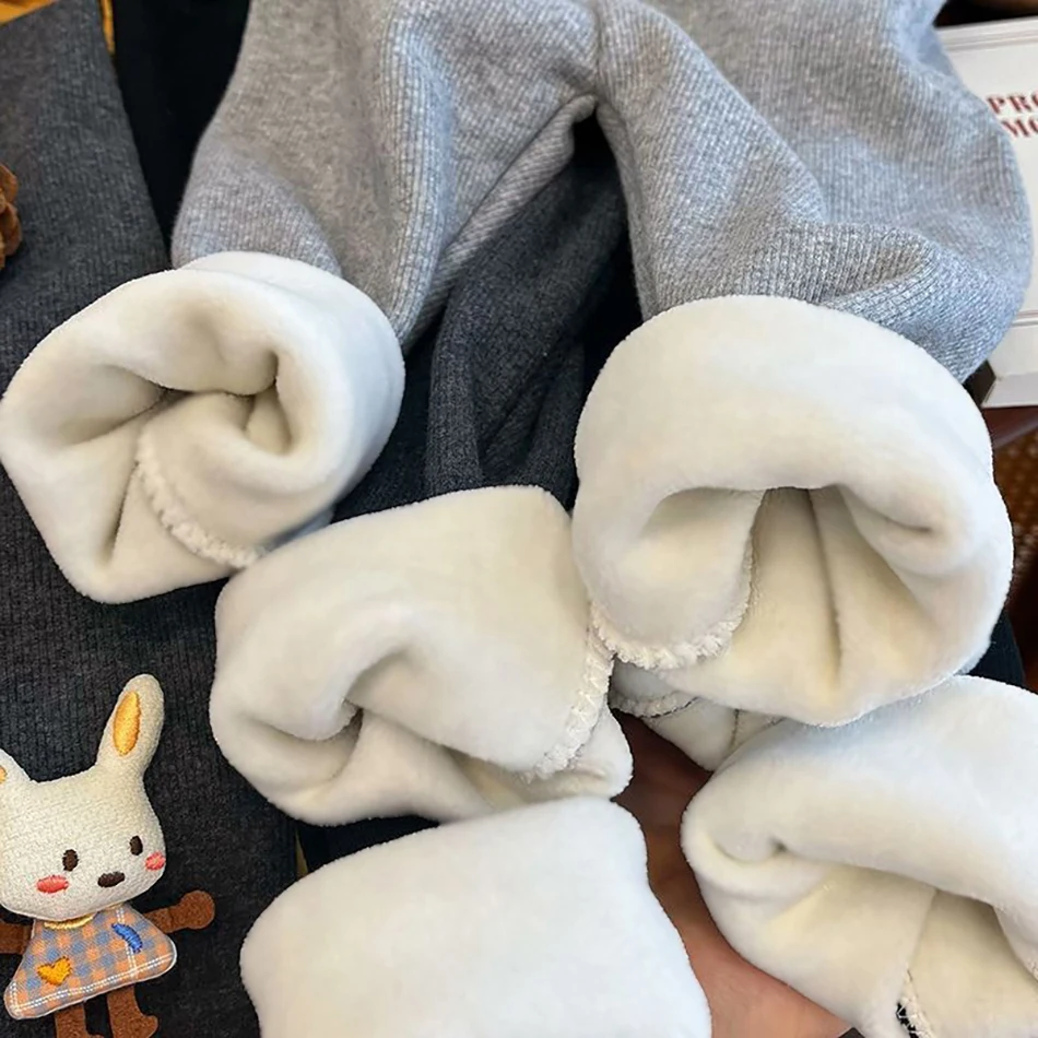 Nombre: Leggings de invierno para niñas, pantalones cálidos con forro polar grueso, decoración de conejo 3D, pantalones para niños, pantalones térmicos de otoño para niños