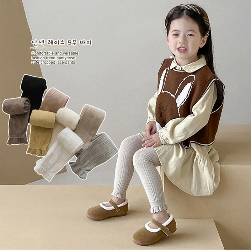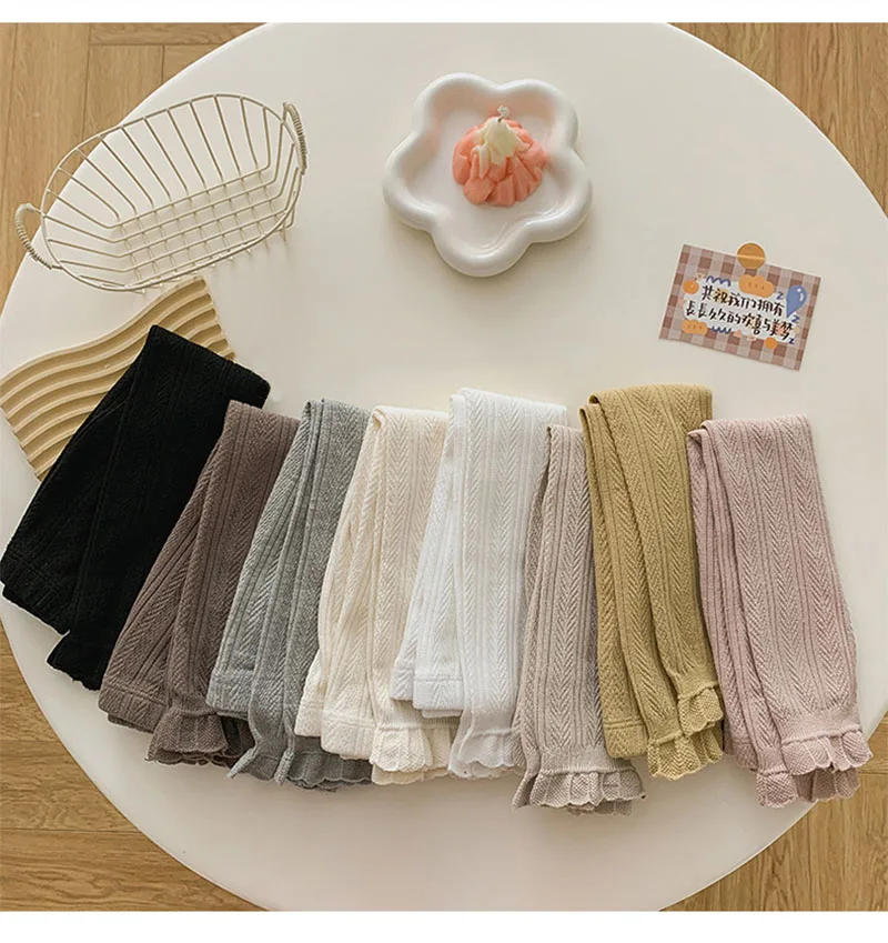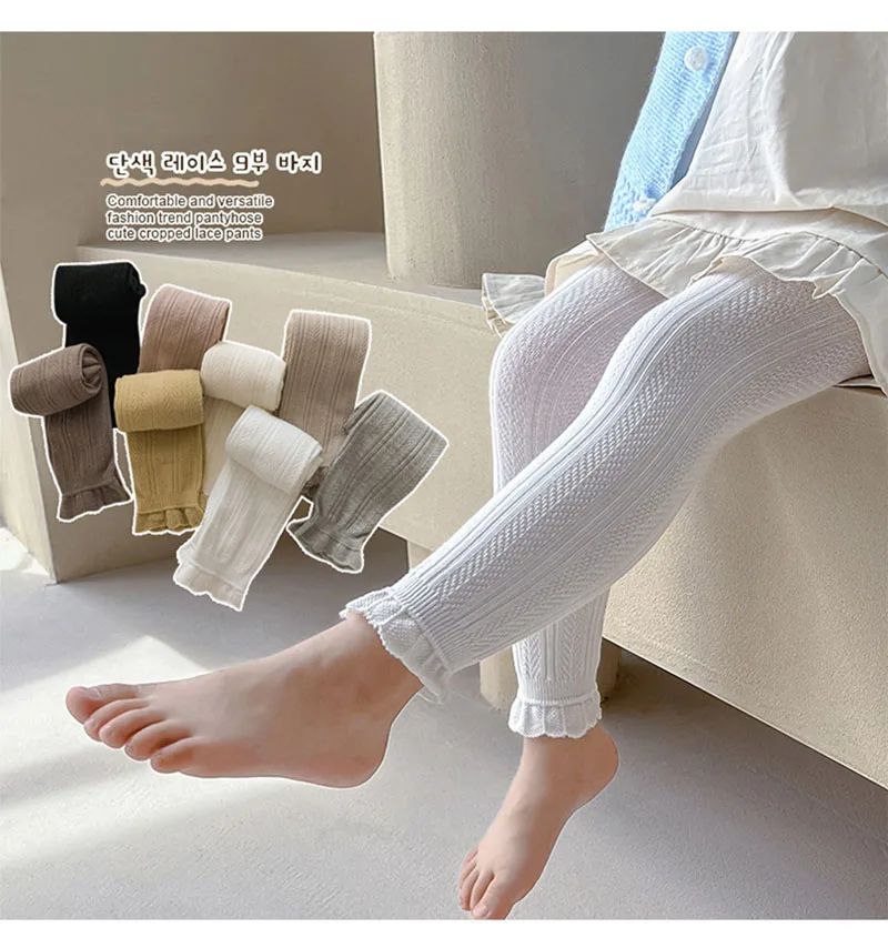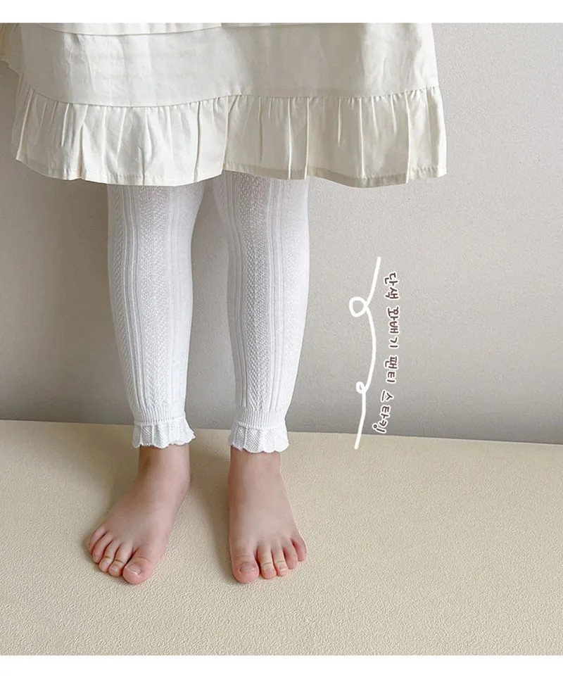 El patrón de punto trenzado añade una textura delicada a los leggings básicos, haciéndolos más modernos que los estilos lisos.