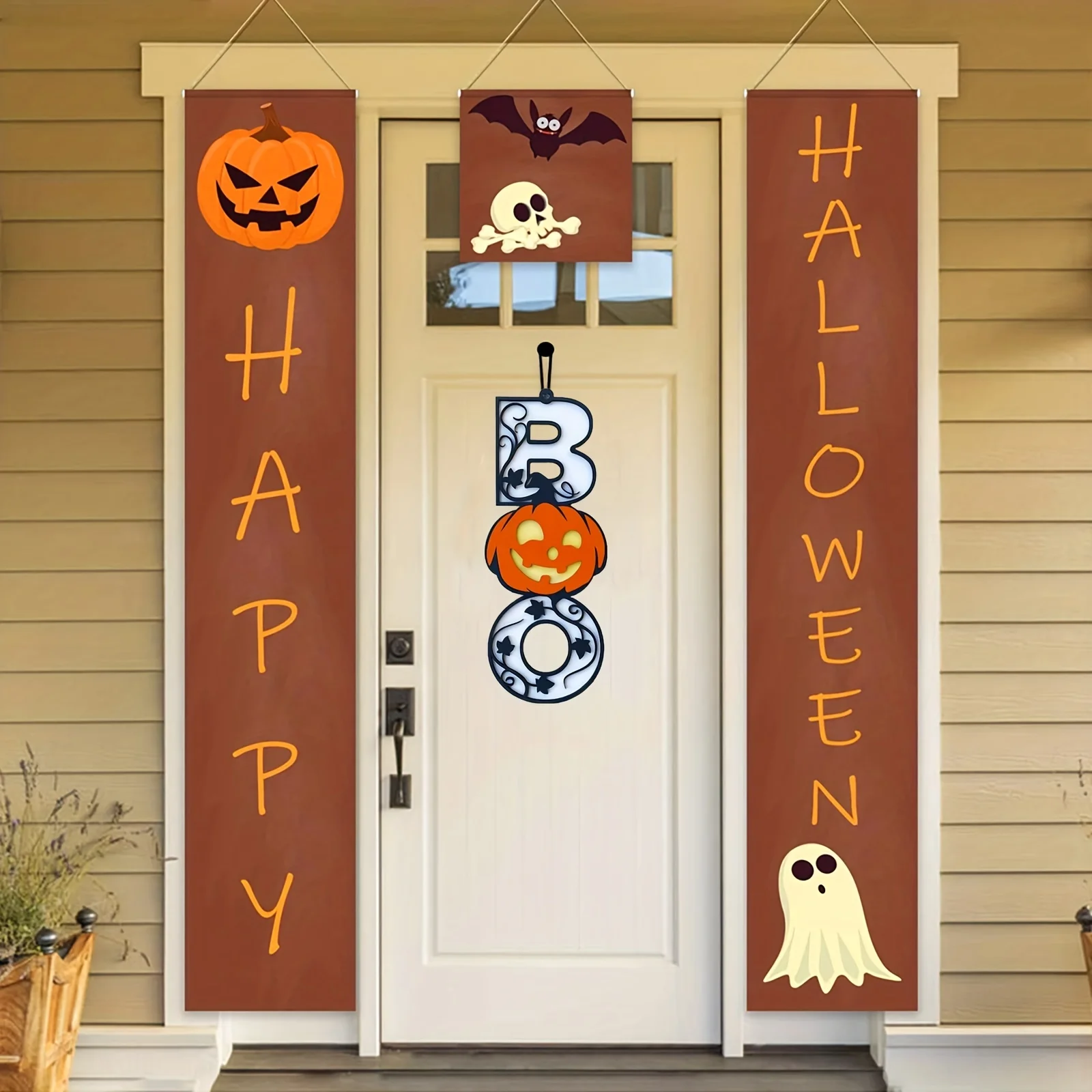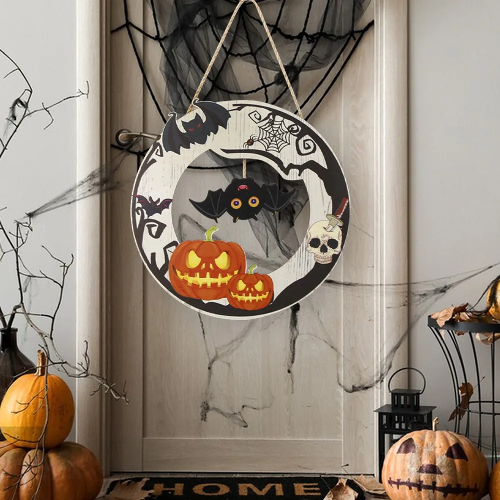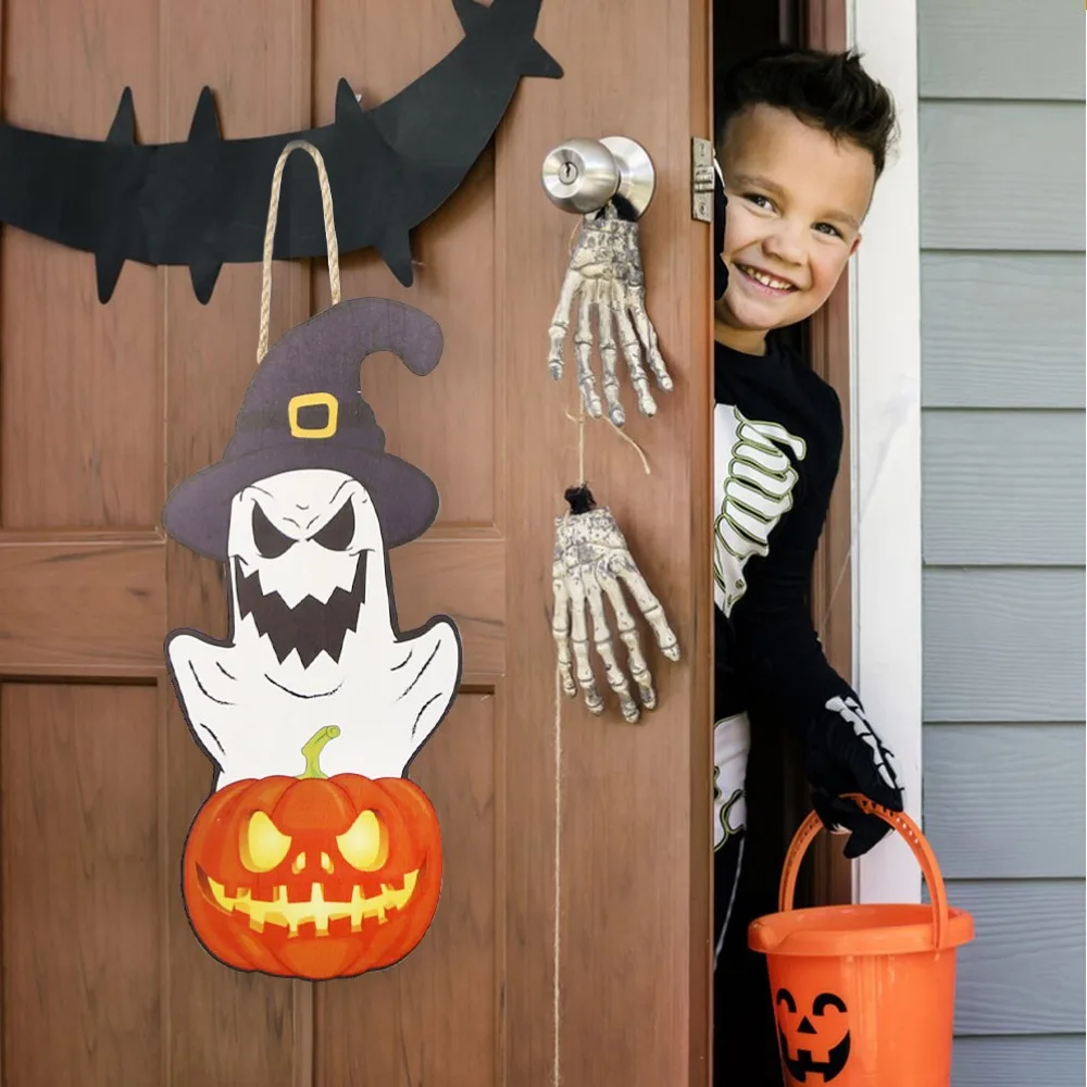 Comprar Letrero colgante de madera para Halloween, decoración para porche, hogar, Bar, habitación, fantasma, Calavera, calabaza, murciélago