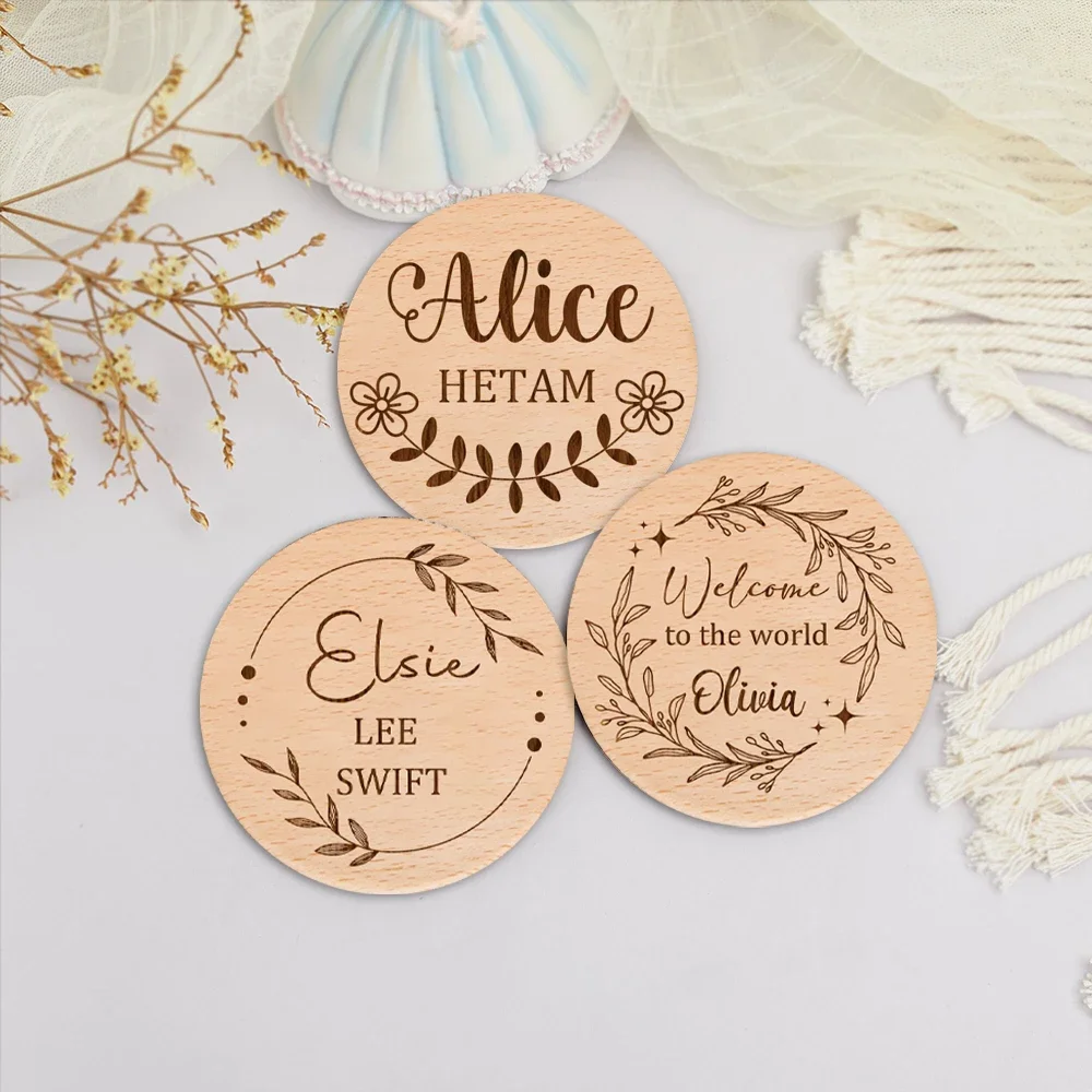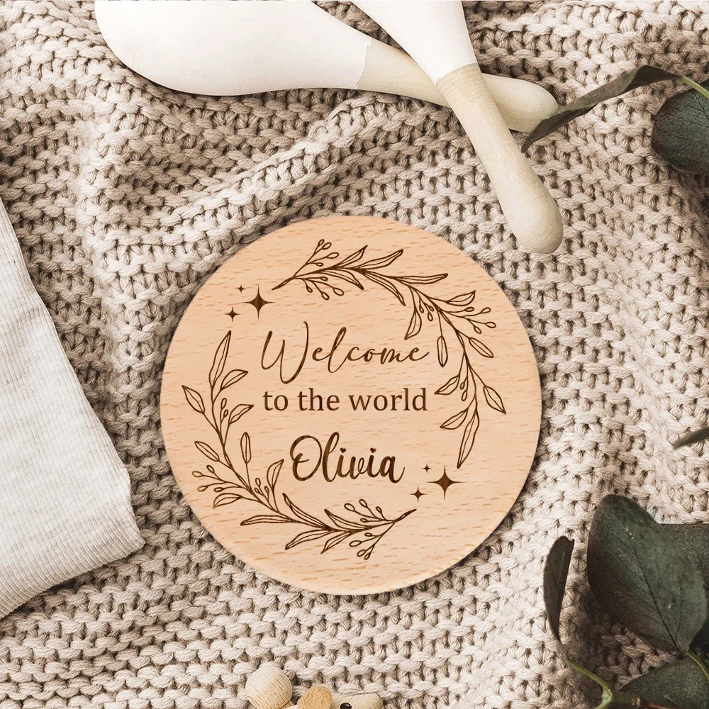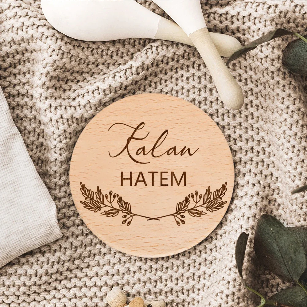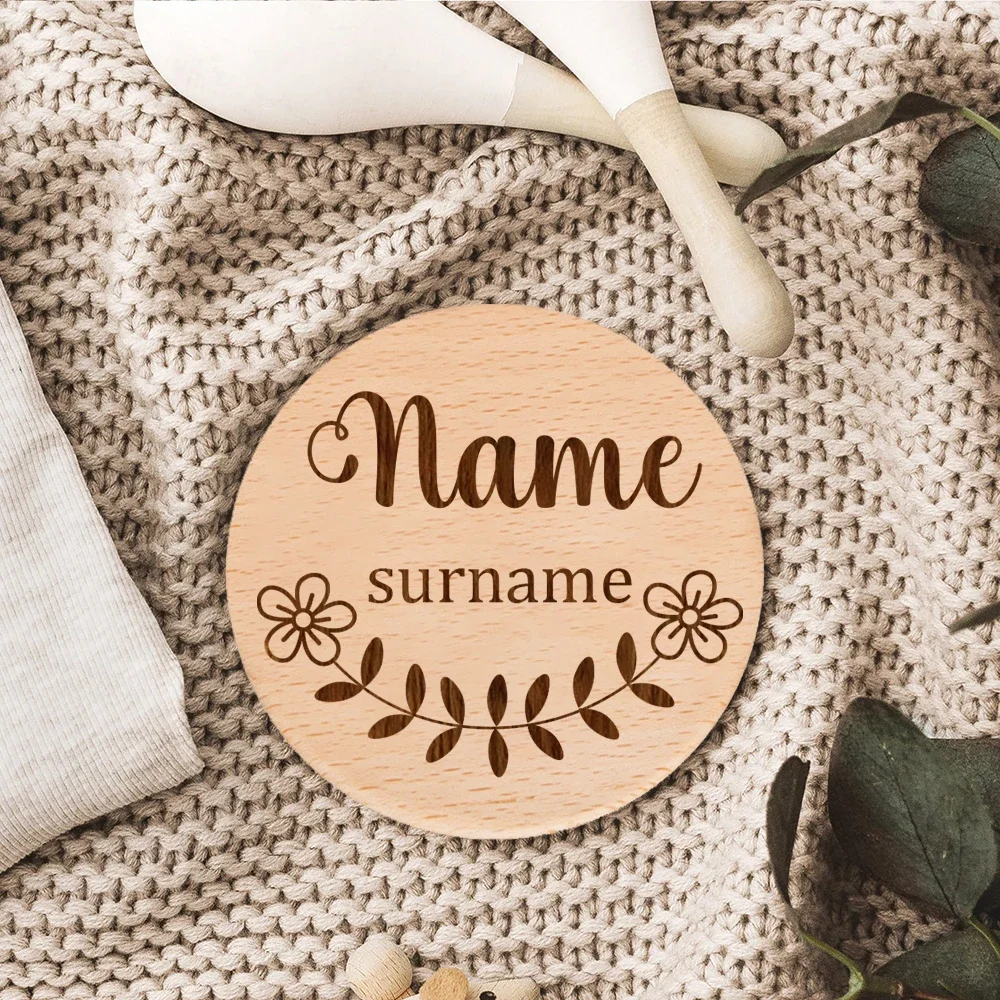Comprar Letrero personalizado con nombre de bebé, placa de madera con estampado de flores, anuncio de recién nacido, regalo