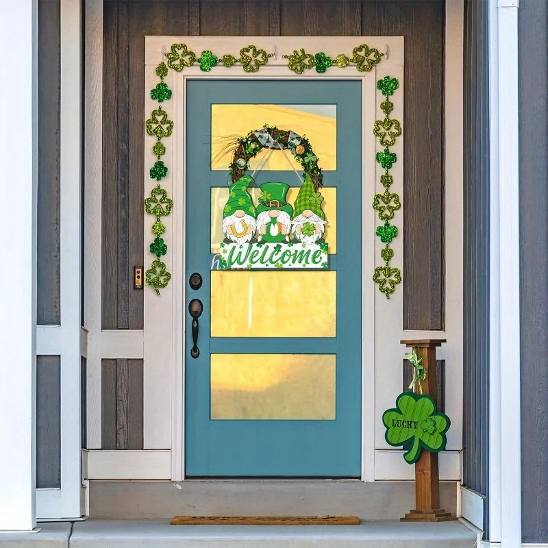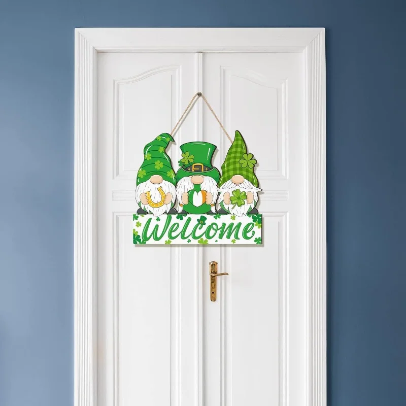 Comprar Letrero de puerta de gnomo de San Patricio, decoración de bienvenida de madera para puerta delantera irlandesa, porche de granja, RV interior/exterior, 1 ud.
