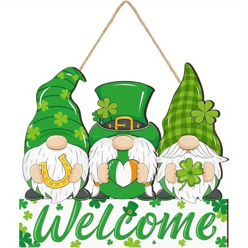 Comprar Letrero de puerta de gnomo de San Patricio, decoración de bienvenida de madera para puerta delantera irlandesa, porche de granja, RV interior/exterior, 1 ud.