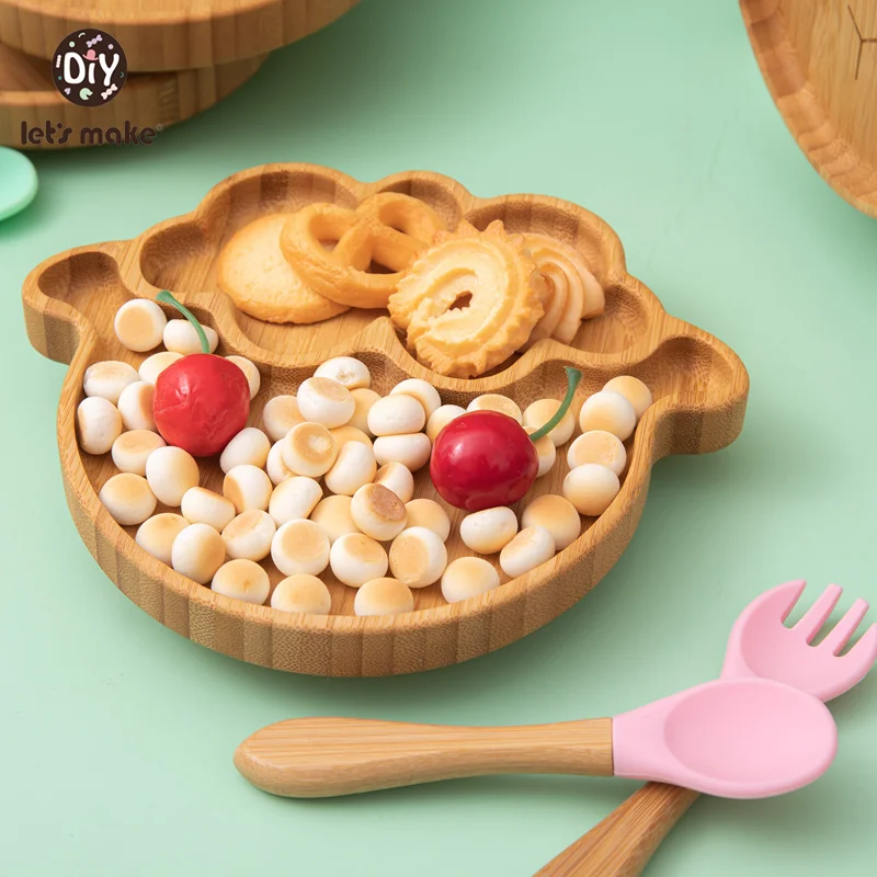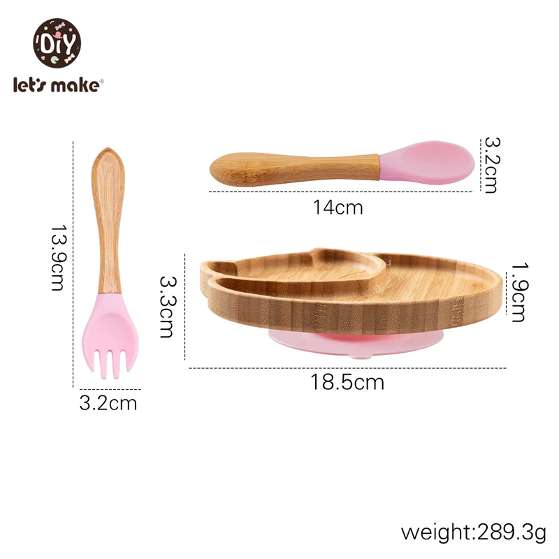 Este producto se utiliza principalmente para alimentar a tu bebé. La forma de dibujos animados atraerá la atención del bebé y dejará que se enamore de comer. Cada diseño es ergonómico. Además, se utiliza el material de fibra de bambú, que es muy ligero y puede ejercitar la capacidad del bebé para comer por sí mismo.