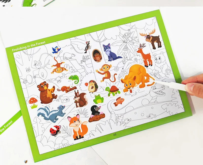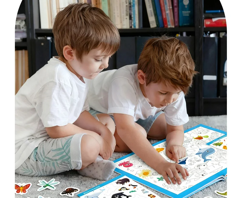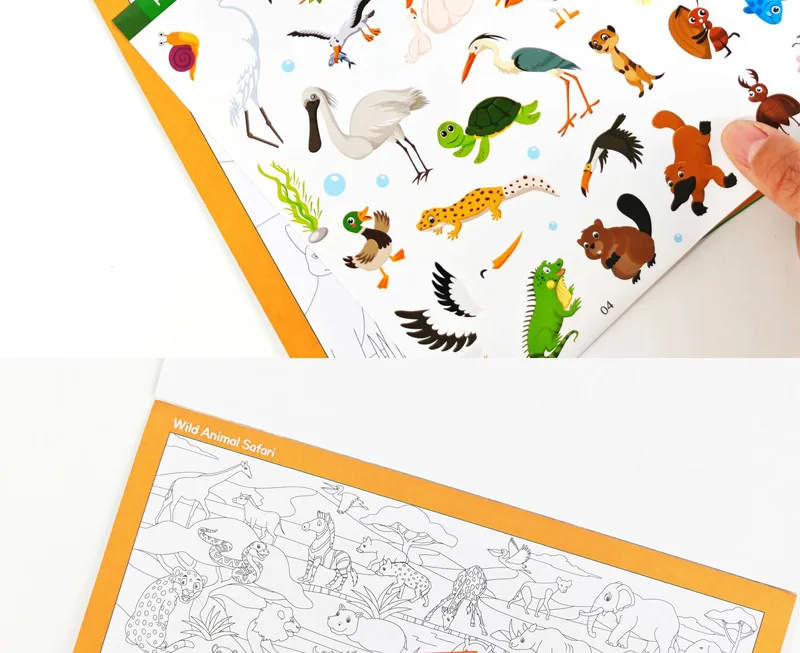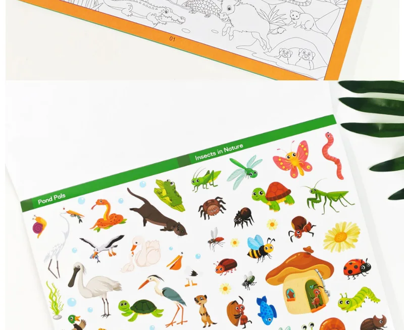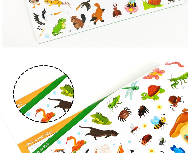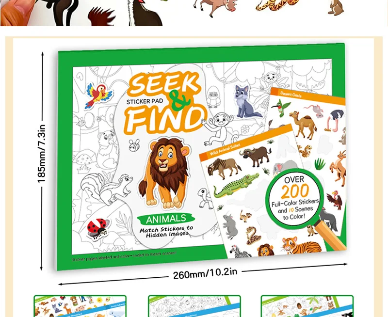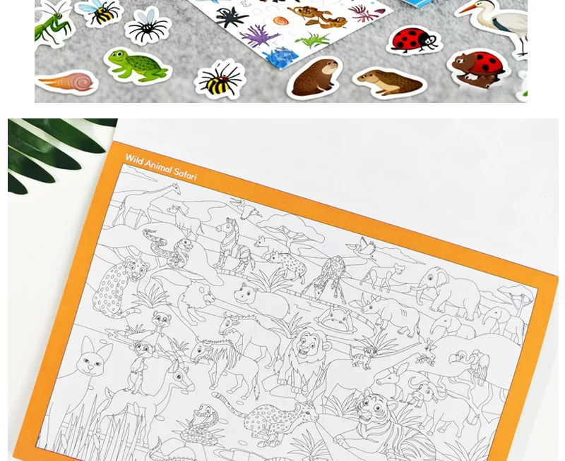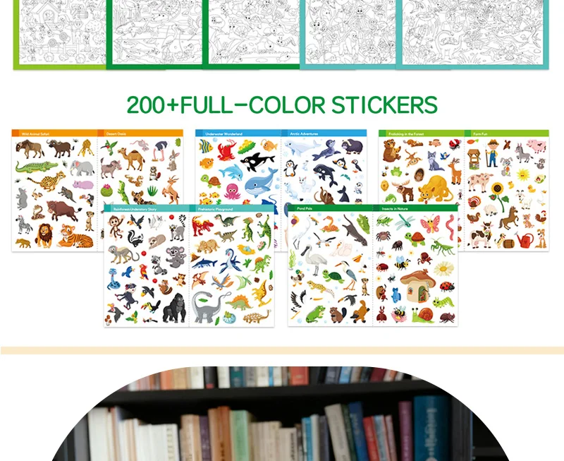 • Más de 200 pegatinas reutilizables: animales salvajes, criaturas del océano, dinosaurios e insectos