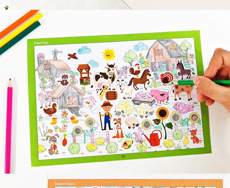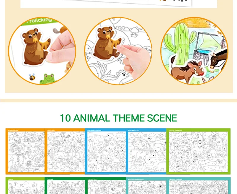 • 10 escenas diferentes: desierto, océano, zoológico, granja, estanque y más