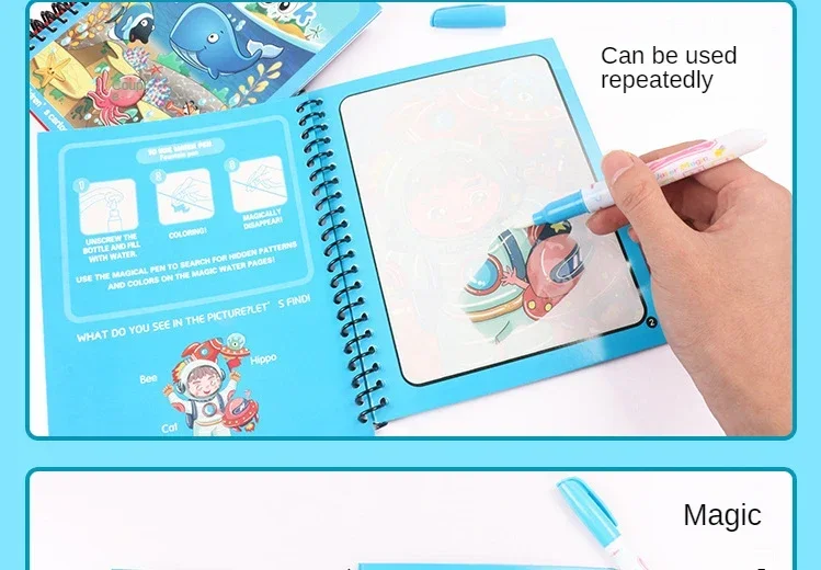 Comprar Libro de dibujo de agua reutilizable para niños, juguete educativo sensorial mágico, Material seguro, juego para padres e hijos, regalo de cumpleaños