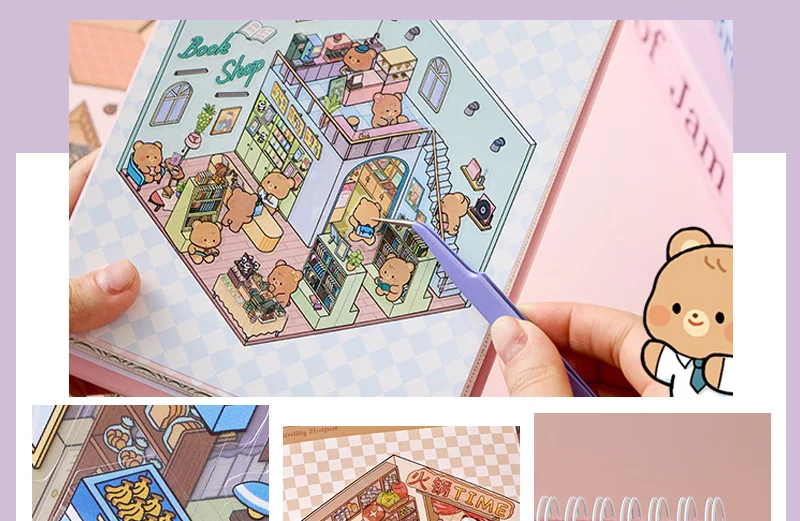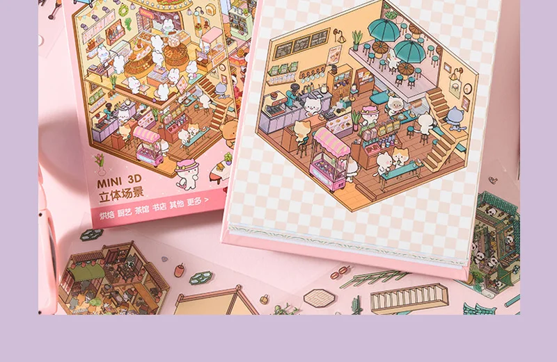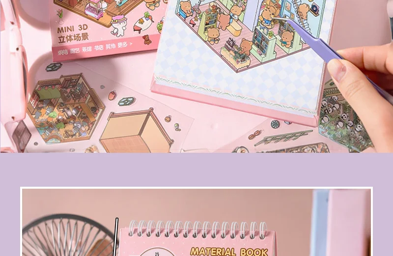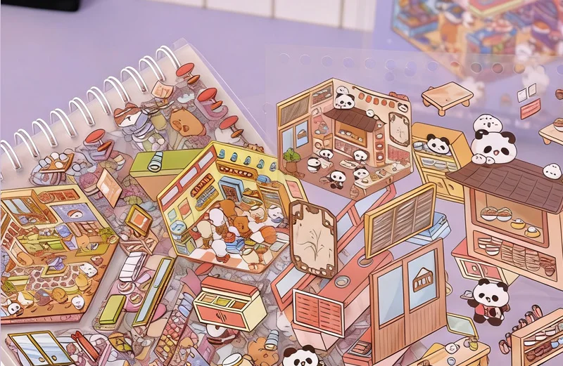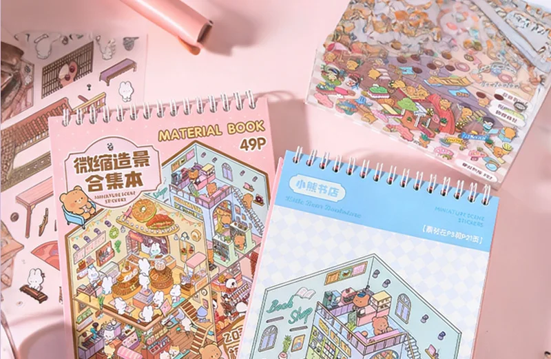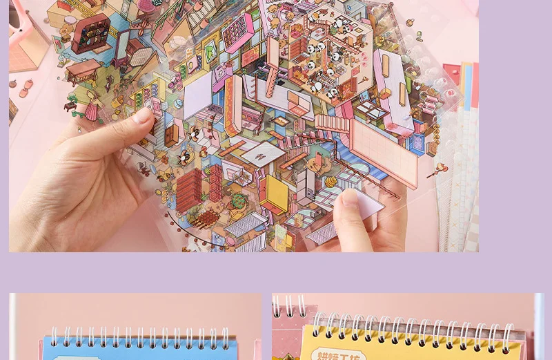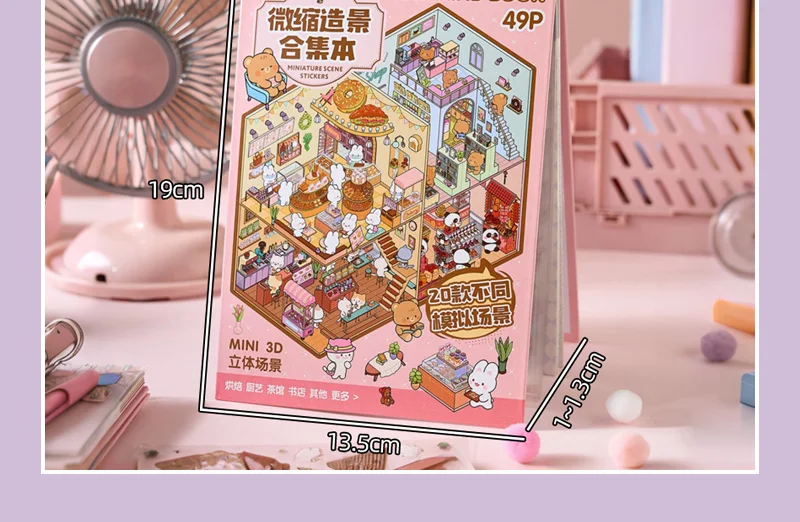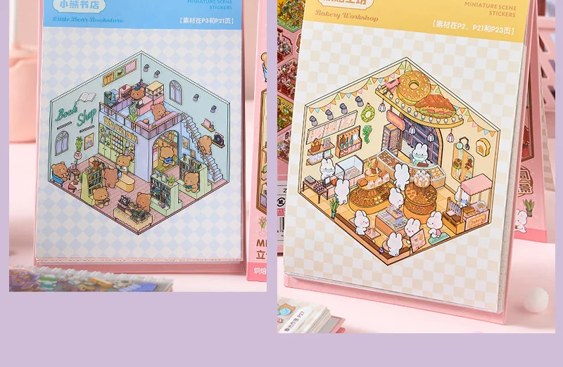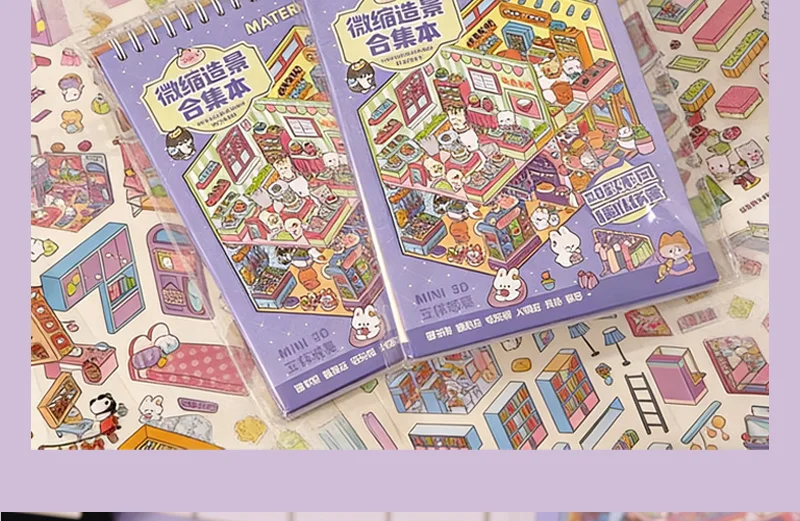 Increíble libro de pegatinas de escenas en miniatura en 3D, con 20 fondos únicos y 20-31 pegatinas a juego por libro, puedes construir pequeños mundos encantadores que resaltan con profundidad y detalle.