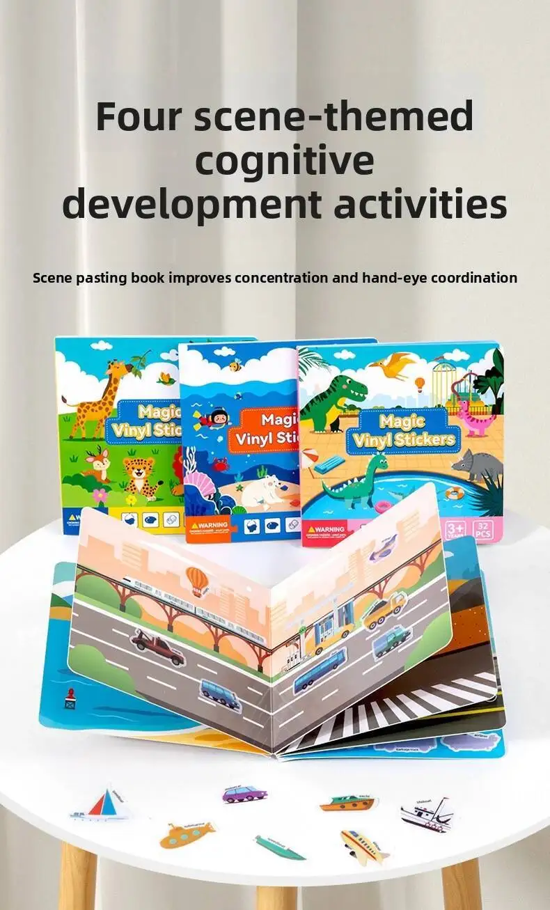 Libro de pegatinas reutilizable, múltiples escenarios, rompecabezas DIY de dibujos animados, libro silencioso y ocupado, juguetes educativos de aprendizaje cognitivo para niños