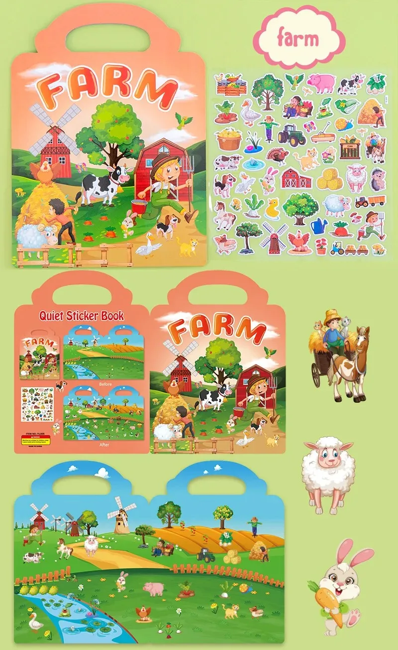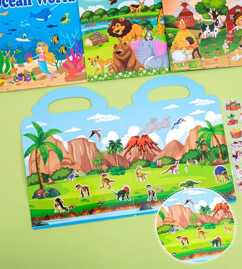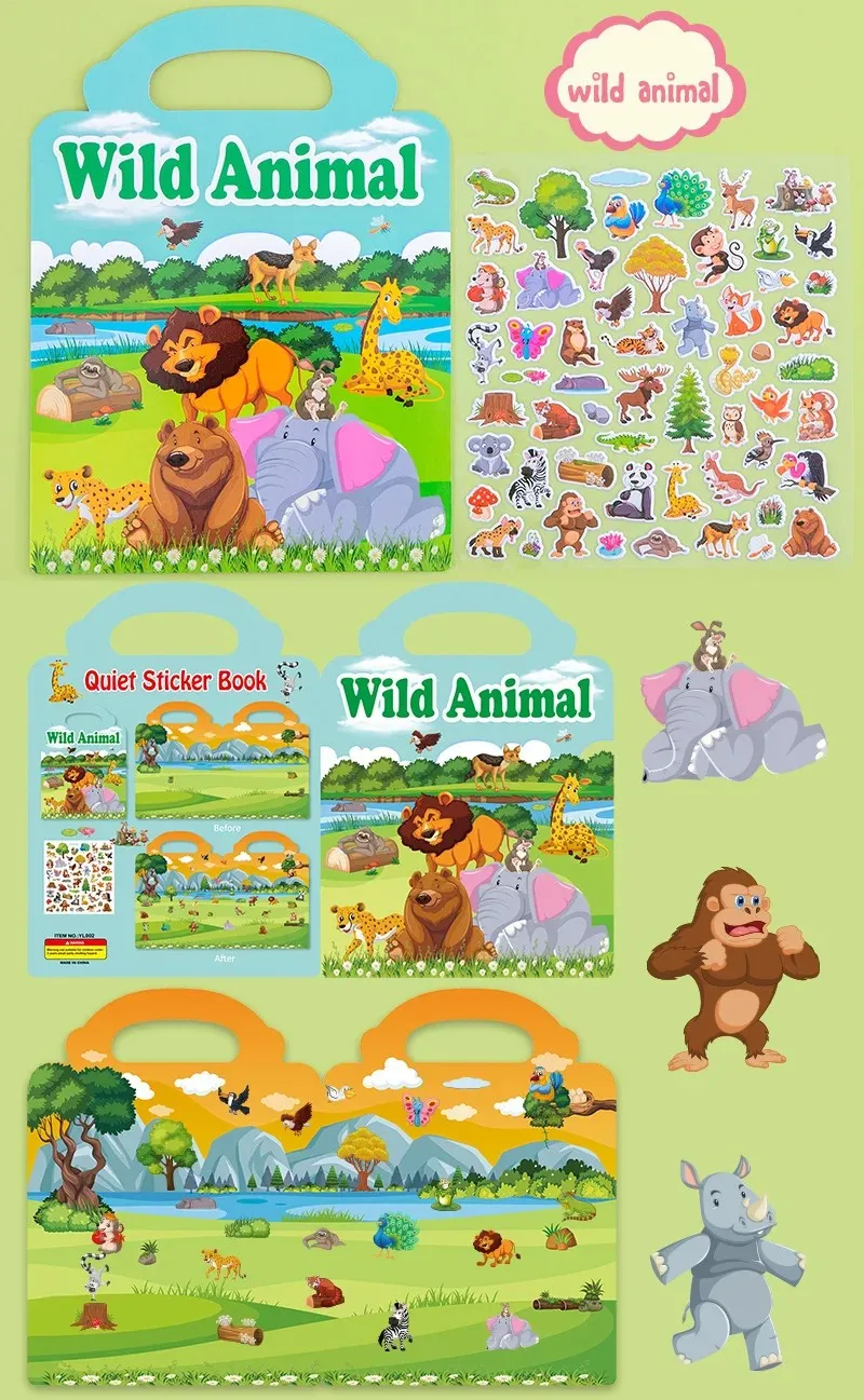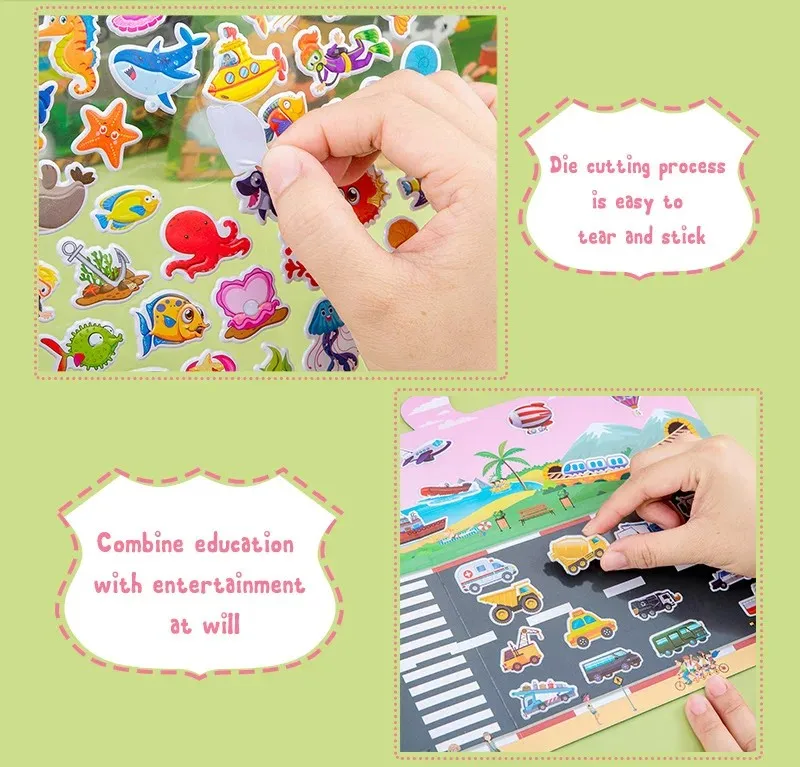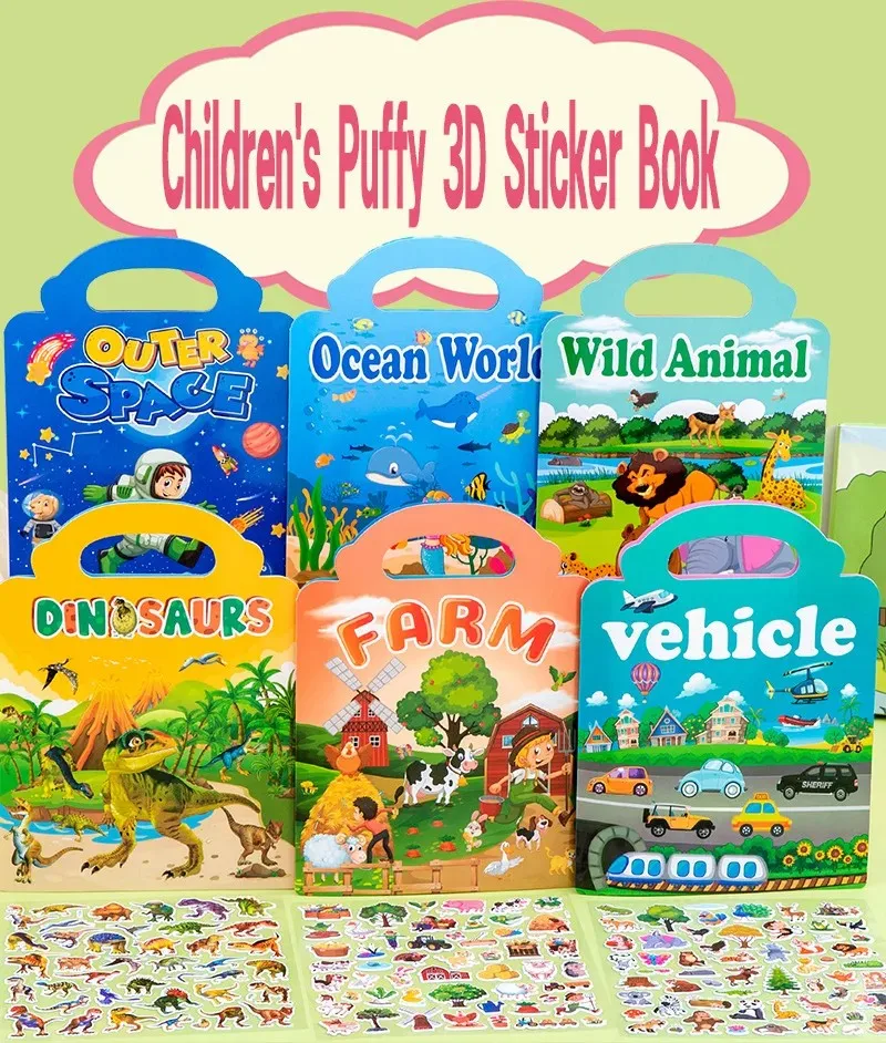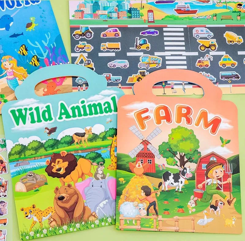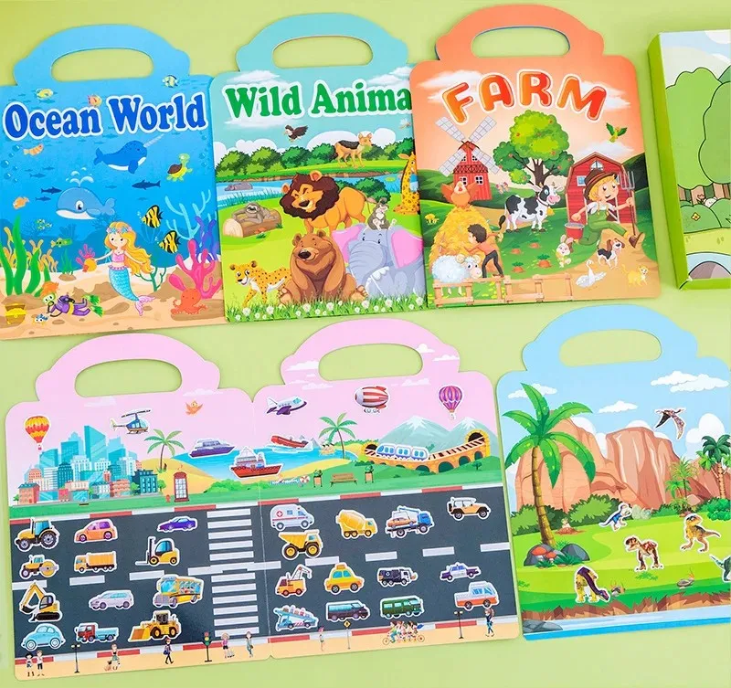 Comprar Libro de pegatinas reutilizables con múltiples temas, juguete de pasta de gelatina, pegatinas de burbujas, rompecabezas, juguetes cognitivos de aprendizaje de animales de dibujos animados para niños, regalos