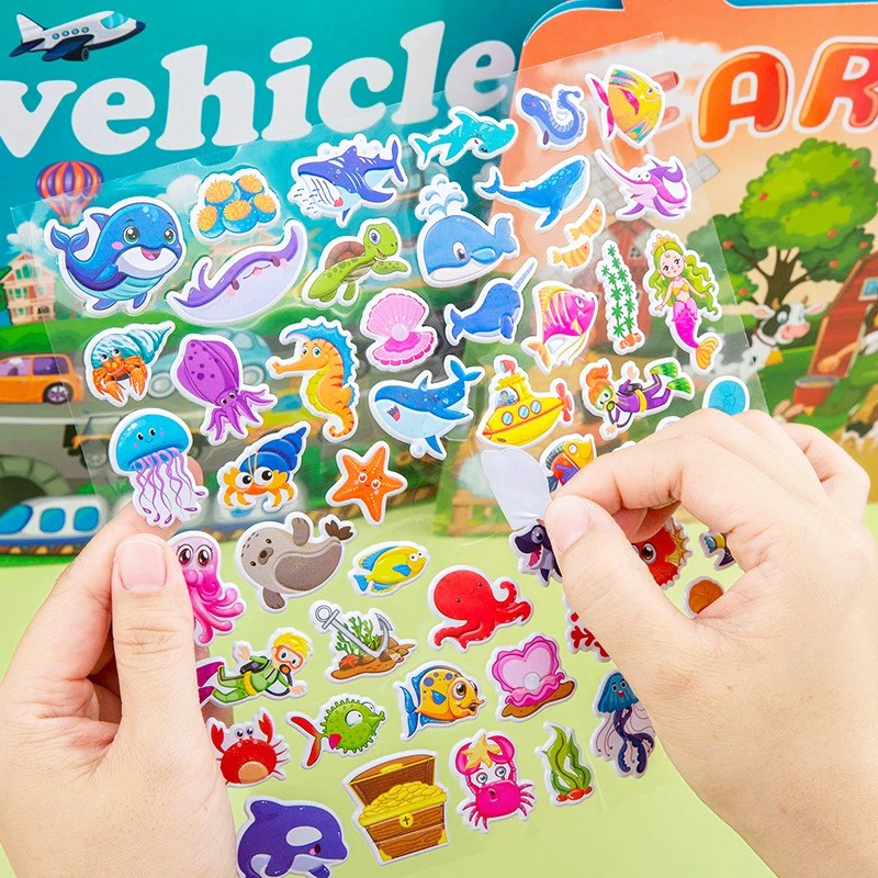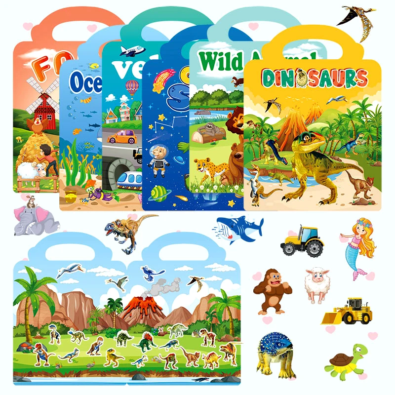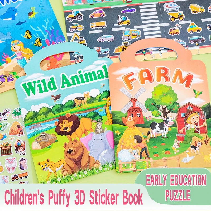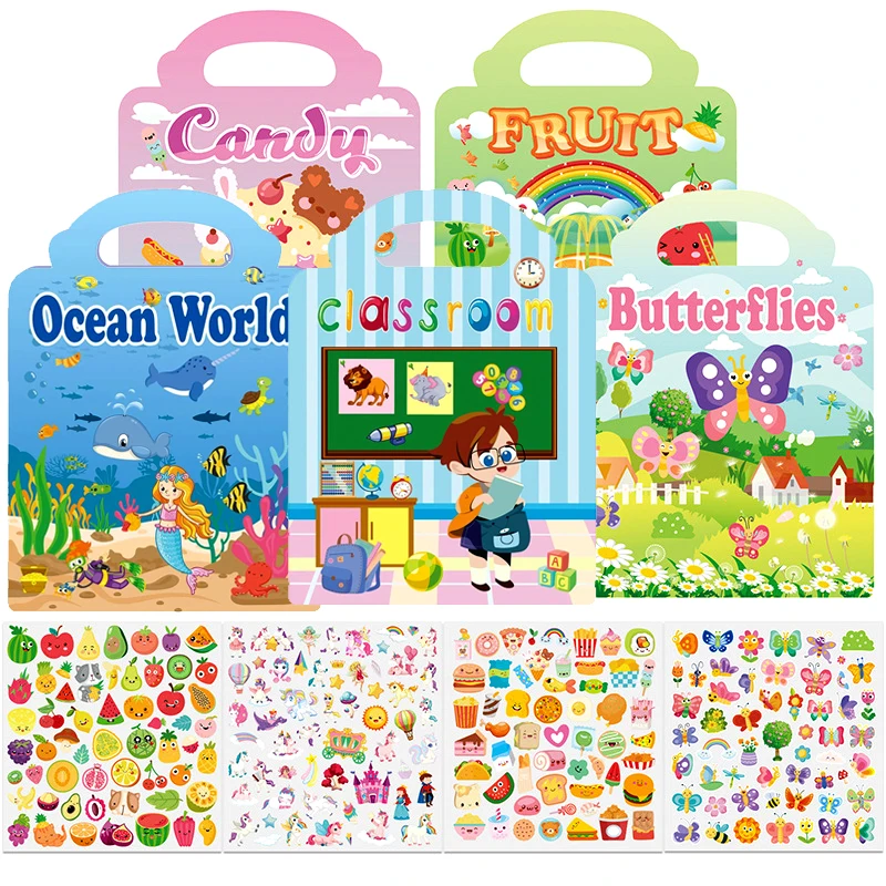 Comprar Libro de pegatinas reutilizables con múltiples temas, juguete de pasta de gelatina, pegatinas de burbujas, rompecabezas, juguetes cognitivos de aprendizaje de animales de dibujos animados para niños, regalos