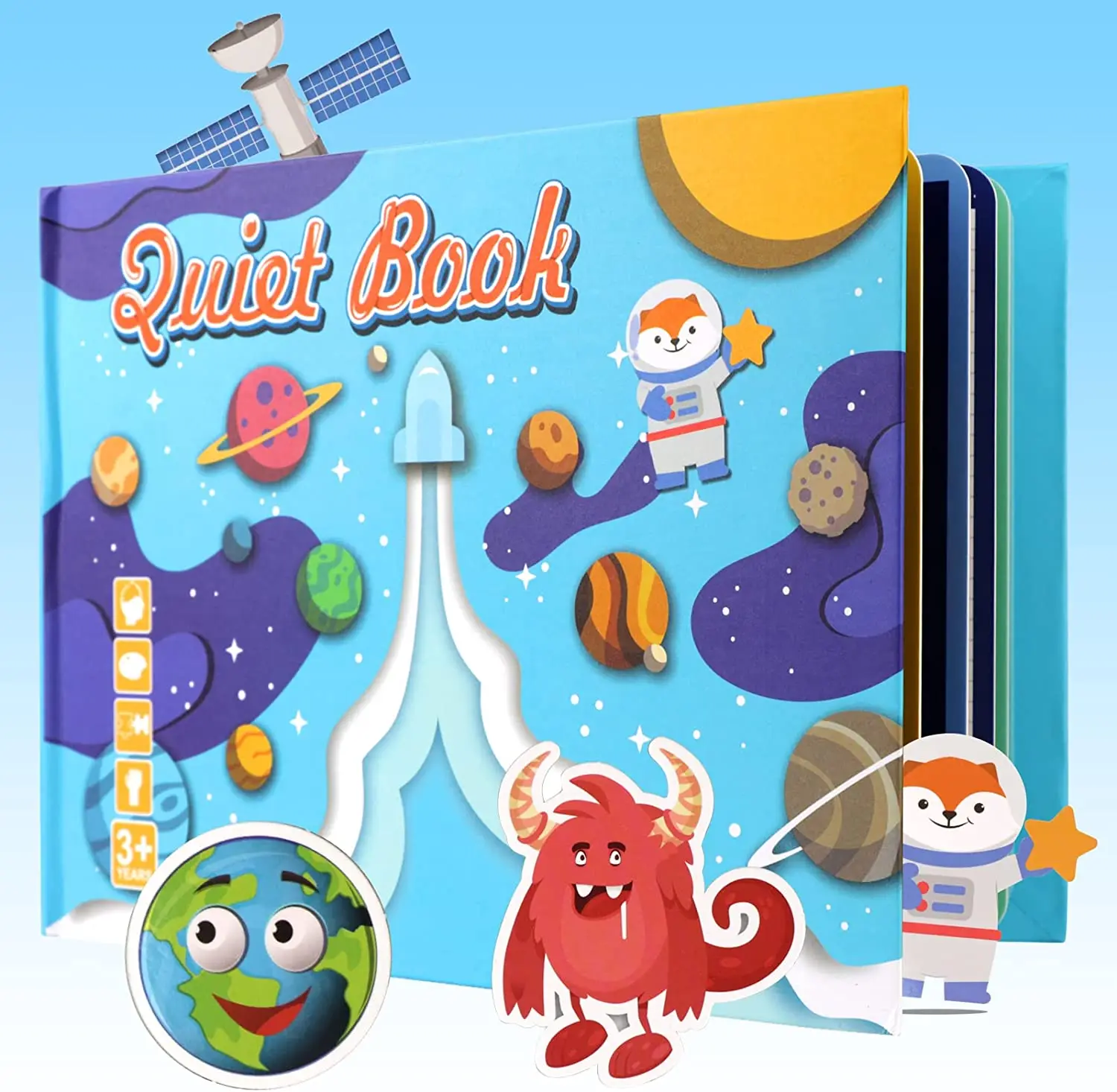 Libro silencioso Montessori para niños pequeños, libro ocupado para niños, vehículo espacial, comida corporal, actividades de aprendizaje preescolar, educación de aprendizaje