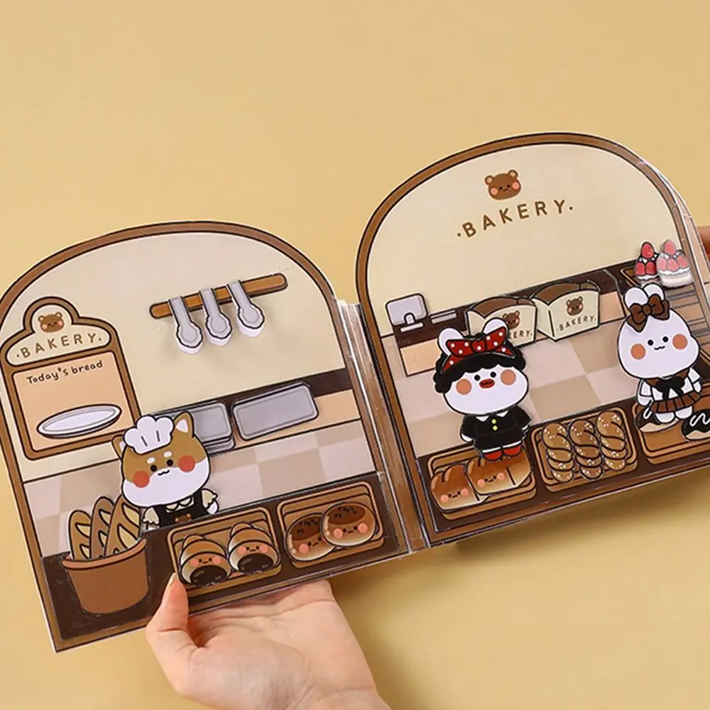 Comprar Libro silencioso de papel Waffle, juego de pegatinas de dibujos animados de pan colorido, pollo frito, tienda de conveniencia, Snack Bar