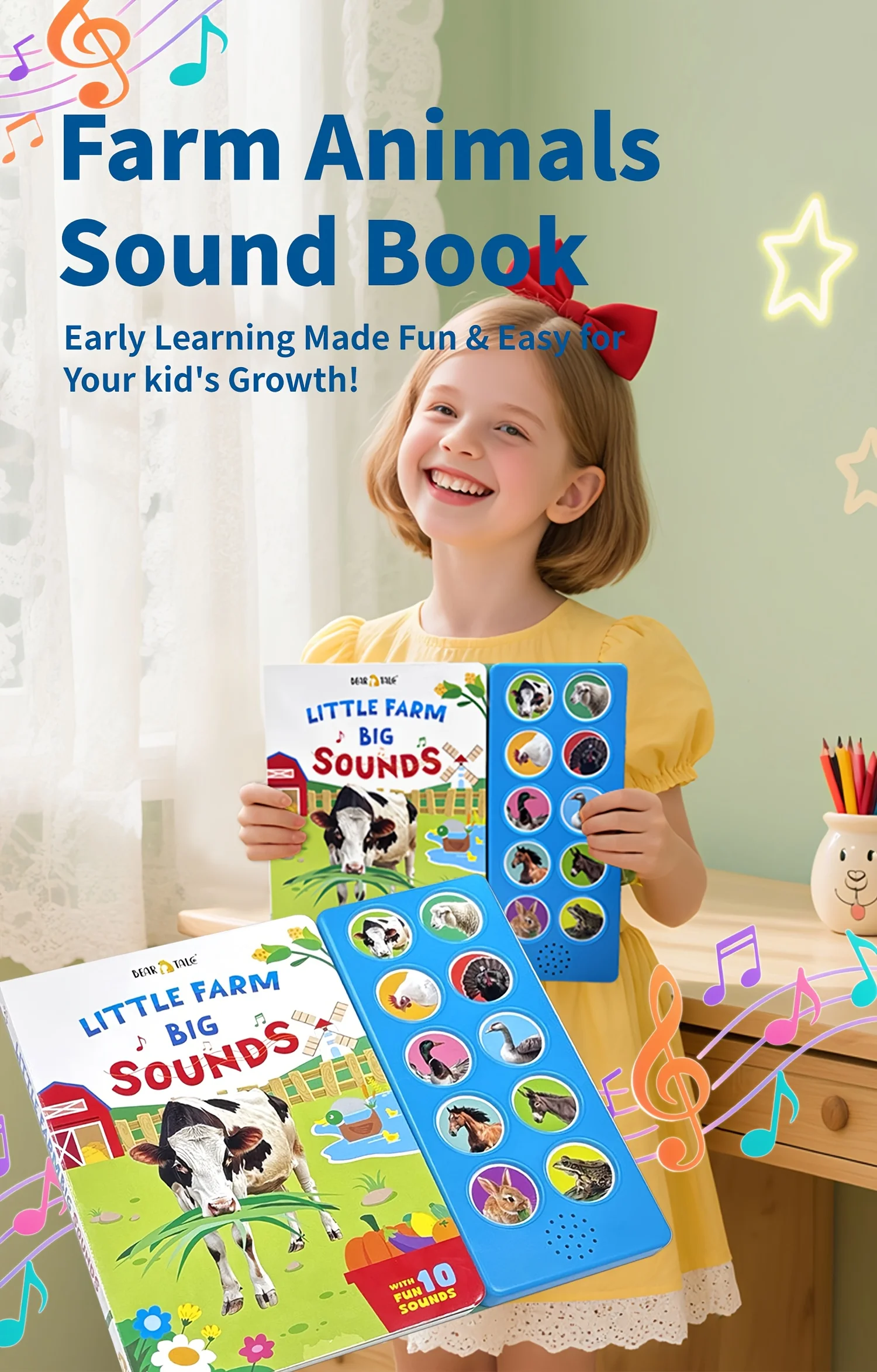 Libro de sonido interactivo para niños con 10 ruidos de granja, figuras de animales de granja ruidosos, juguetes educativos para niños pequeños, regalo - imagen 1