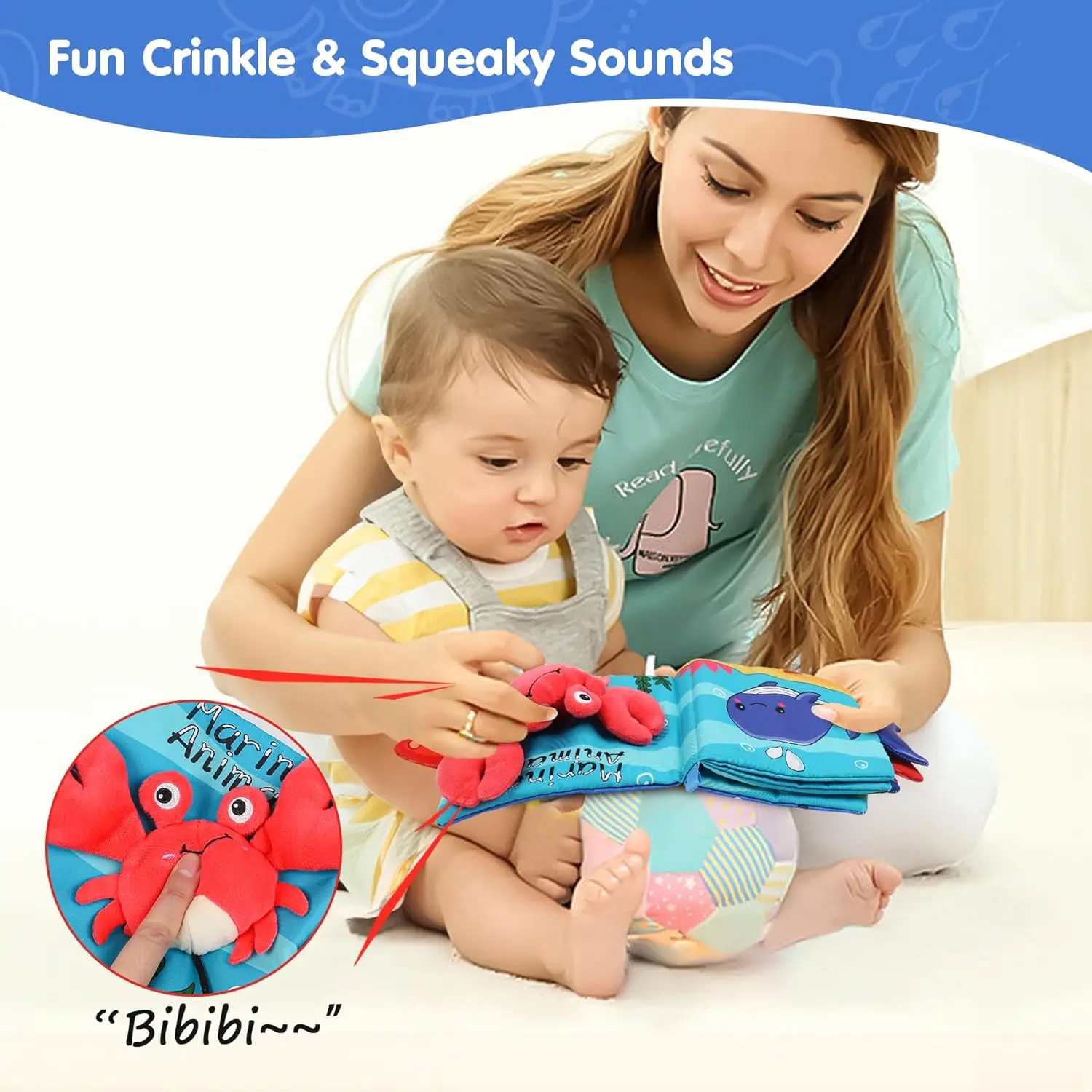 Comprar Libros blandos para bebés, juguetes, libro de tela arrugada, colas de animales marinos para bebés, desarrollo temprano, cochecito interactivo, juguetes suaves