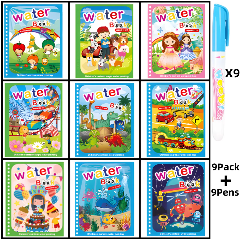 Libros para colorear al agua, paquete de 9/18, libros de pintura con agua, garabatos de aprendizaje educativo, libro de arte reutilizable sin mensaje, regalo de vacaciones de viaje