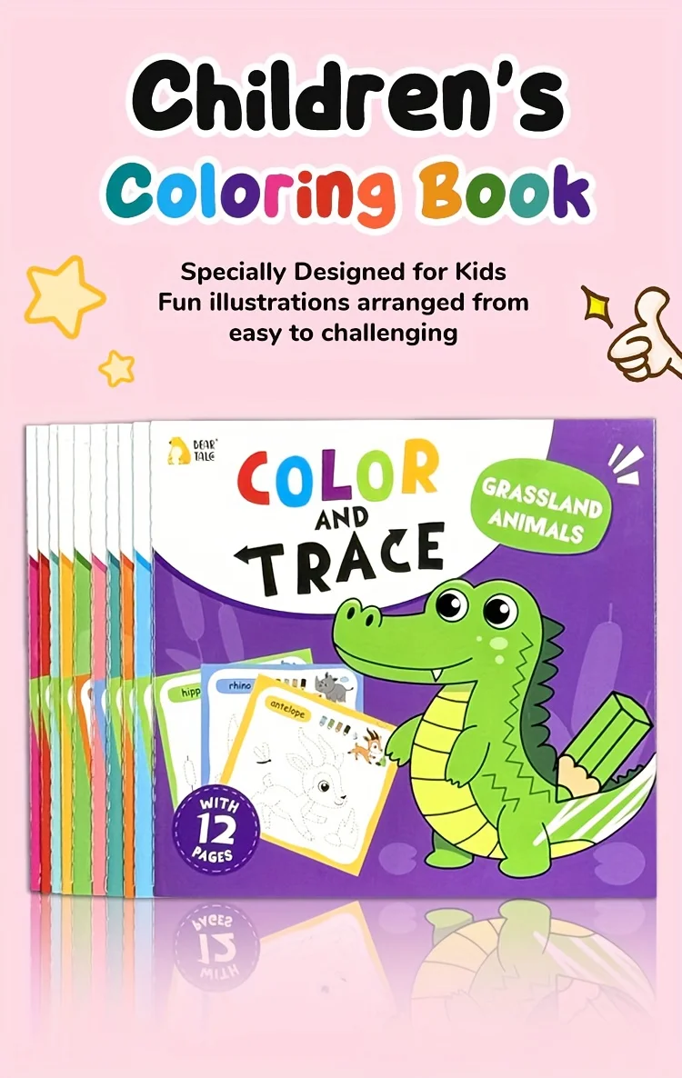 Libros para colorear divertidos para chico, libro para colorear de animales de dibujos animados, juguete de viaje para actividades, juego de pintura artística, regalo educativo, 10 Uds.