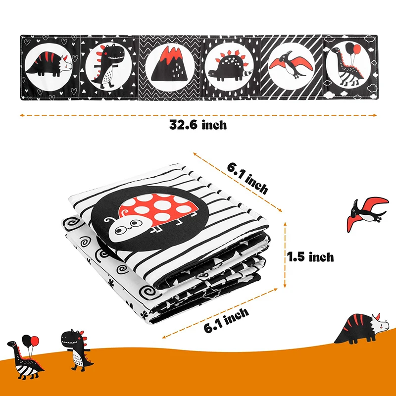 LIBRO SUAVE PARA BEBÉ NEGRO Y BLANCO: Los libros de tela para bebés ayudan al desarrollo visual de su bebé.Para los recién nacidos, la visión del bebé está borrosa y no puede reconocer ningún color.A unos 3 meses tu bebé sólo podrá ver blanco y negro y está interesado en los colores.Hasta que el bebé tenga 6 meses, ya puede distinguir el alto contraste en blanco y negro, especialmente cuando aparecen los dos colores al mismo tiempo, es más capaz de atraer la atención del bebé.