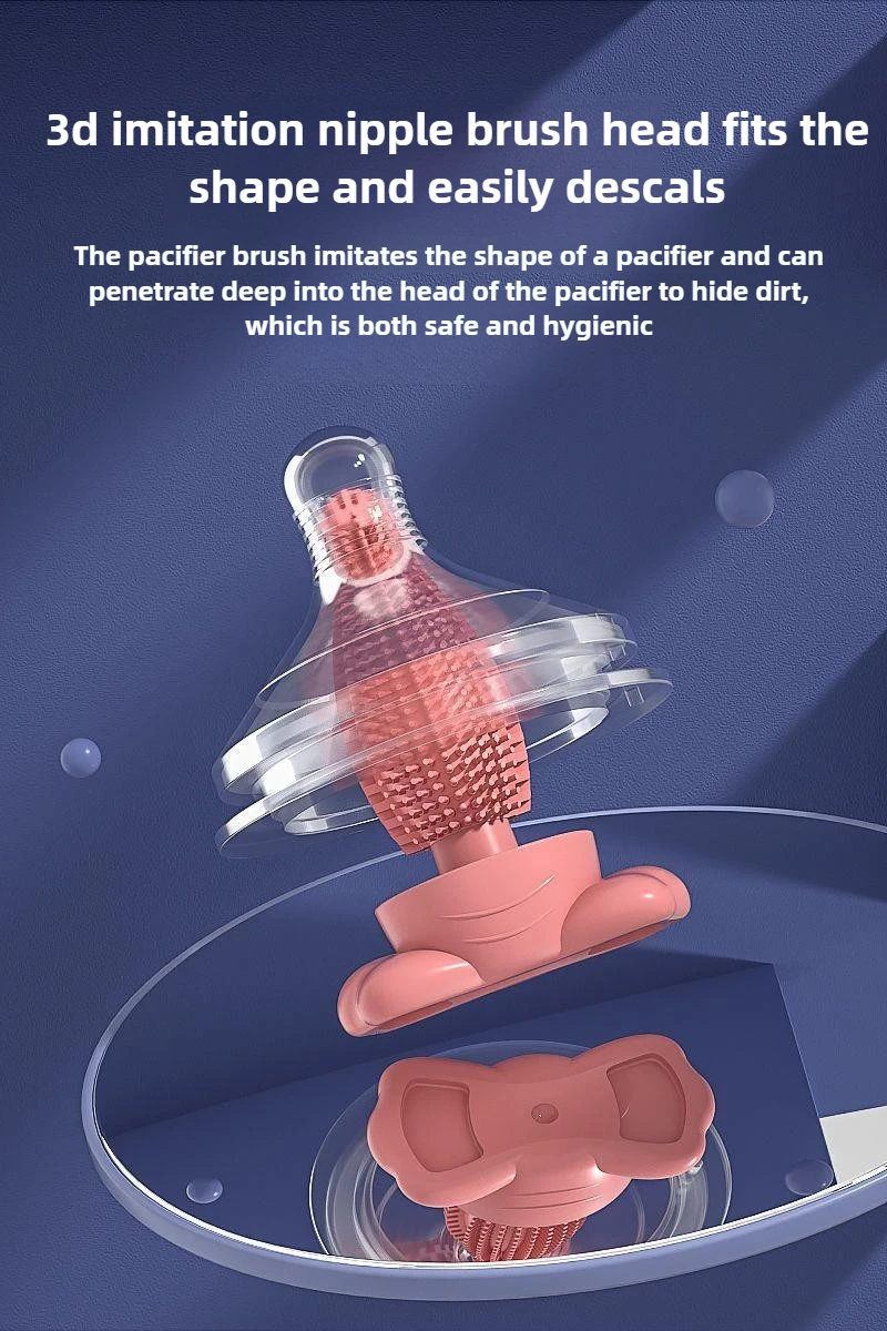 Limpiador de alimentación de bebé de silicona tres en uno para el cuidado del recién nacido, diferentes colores, botella segura, tetina, pajita, juego de fregado, cepillo