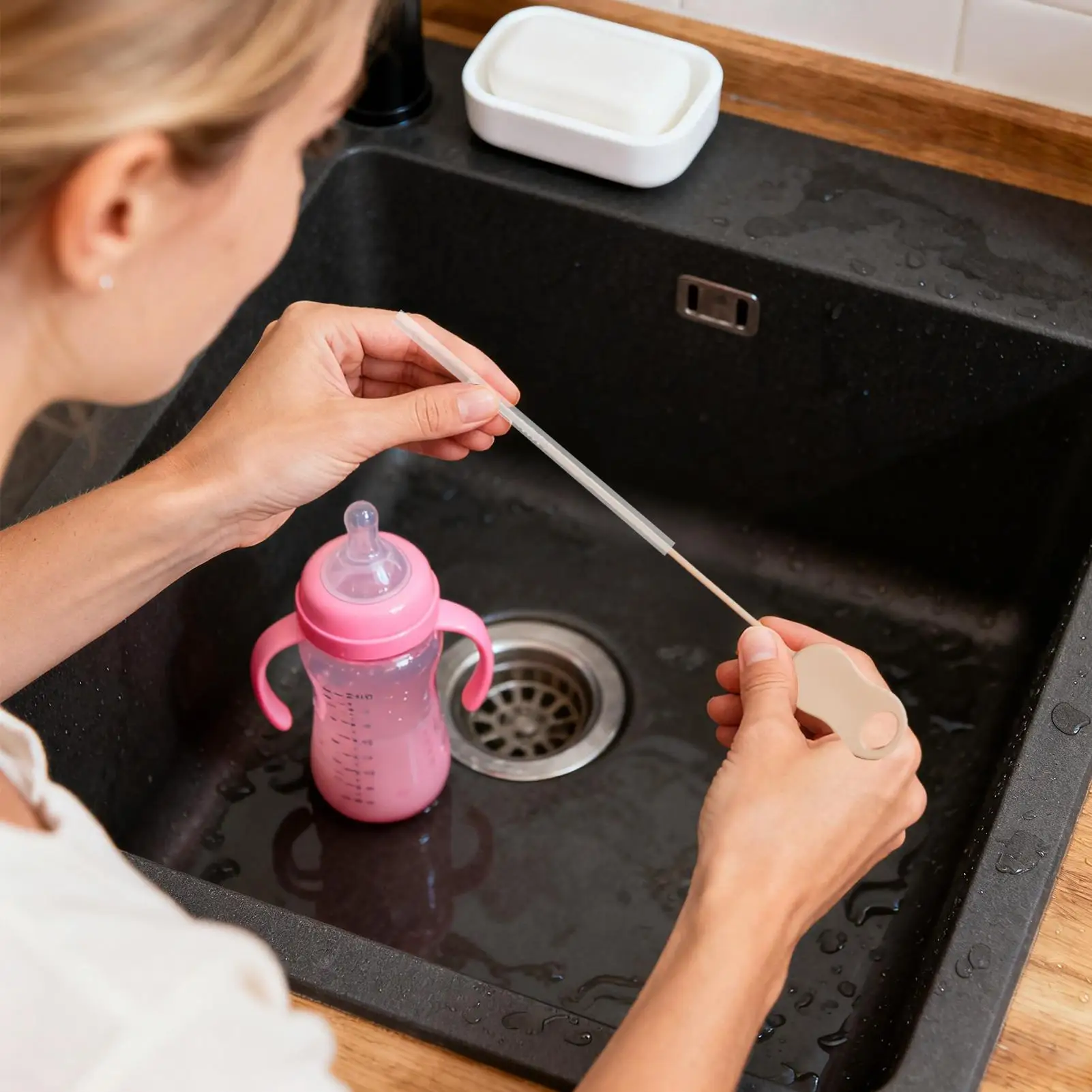 3.Fácil de usar: con su varilla suave ajustable y su estructura flexible y flexible, este cepillo para pajita está diseñado para adaptarse a botellas curvas sin problemas, proporcionando una solución de fácil uso con una sola mano que mejora la eficiencia de la limpieza en hogares o lugares de trabajo.