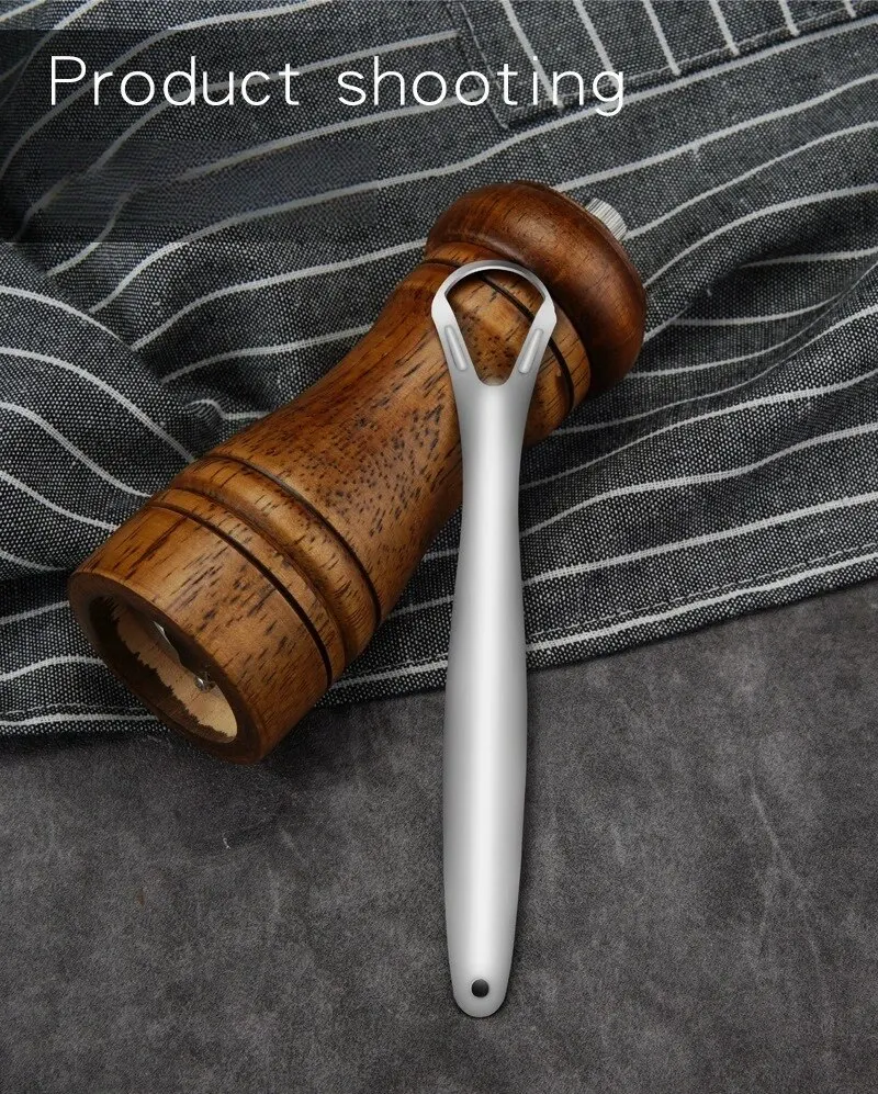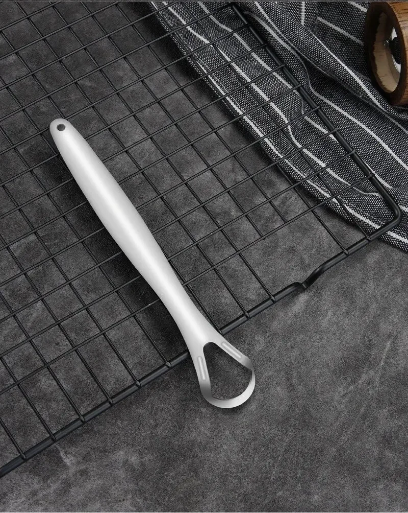 • Construcción de acero inoxidable:Fabricado con acero inoxidable de alta calidad, este raspador de lengua es duradero, resistente al óxido y está diseñado para durar, lo que garantiza un uso prolongado.