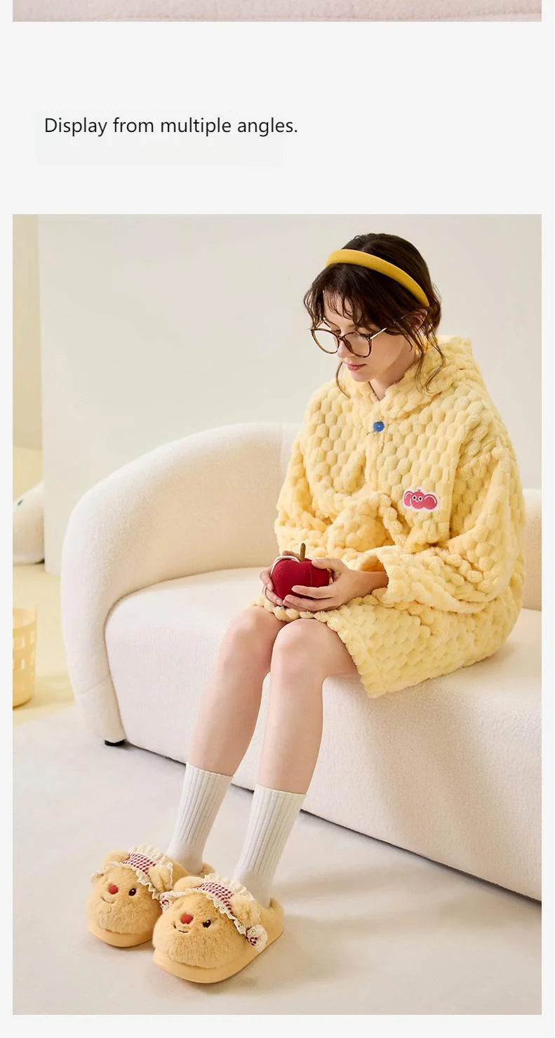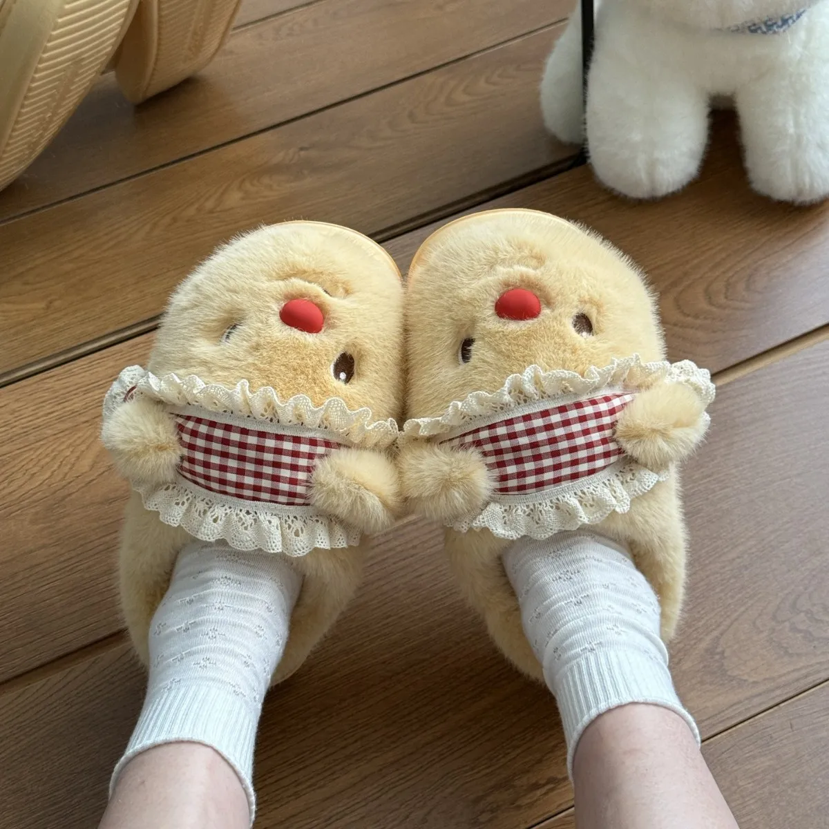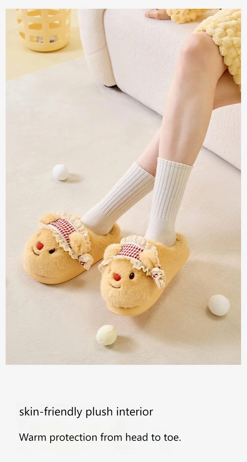 Lindas zapatillas de felpa de dibujos animados para mujer en otoño e invierno, nueva casa interior antideslizante, cálidas con zapatillas de felpa añadidas