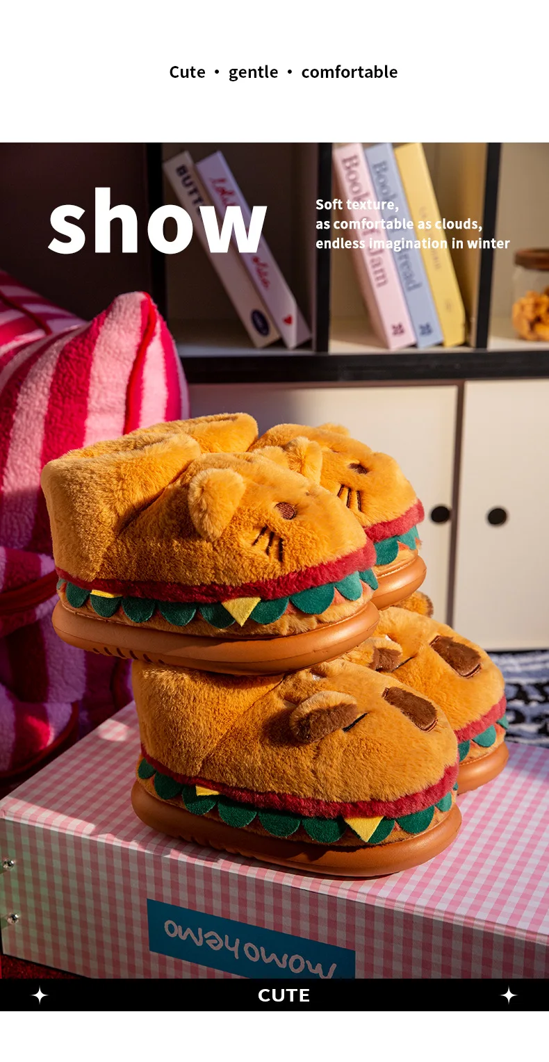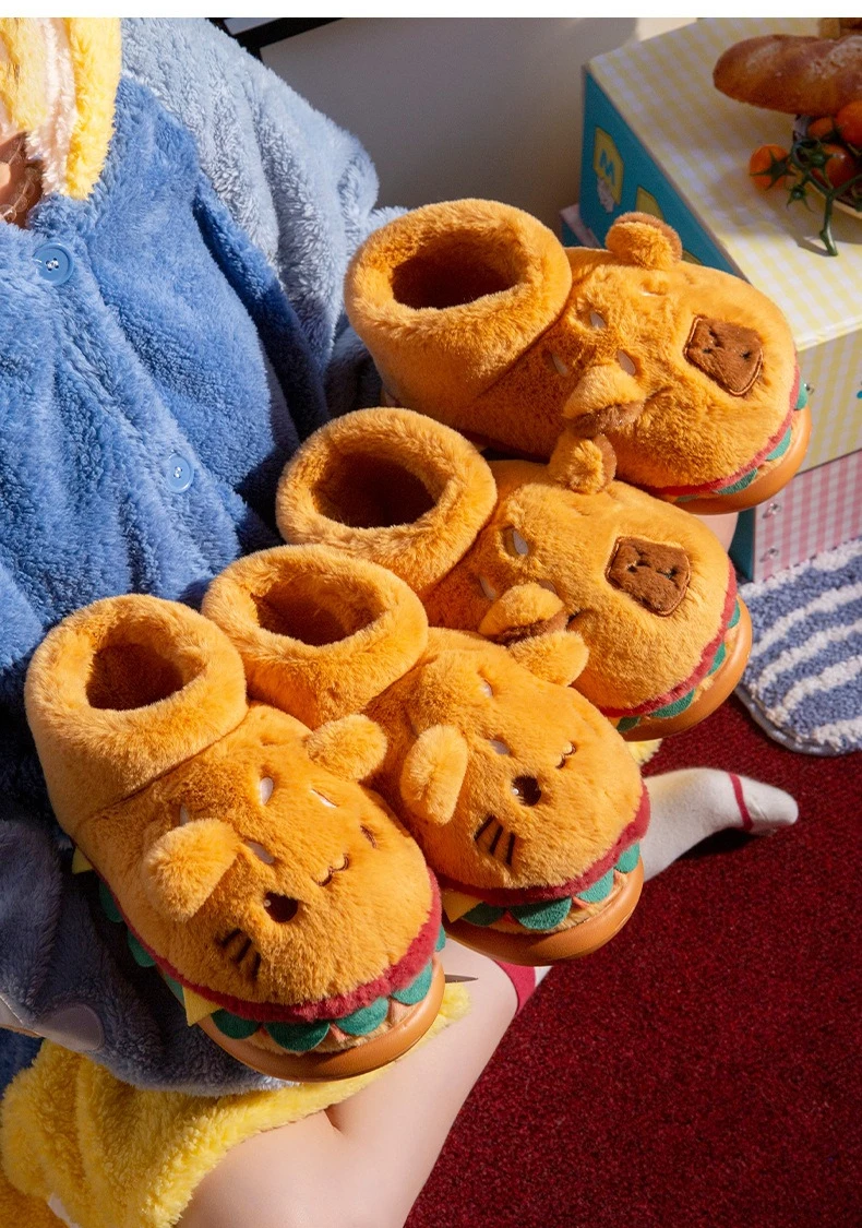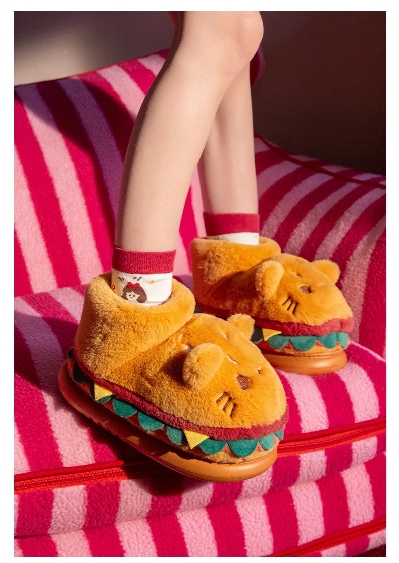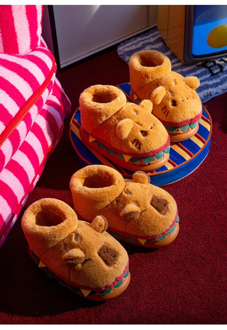 Comprar Lindas zapatillas mullidas de hamburguesa para mujeres y hombres, zapatos cálidos de invierno de alta calidad para casa, botas de nieve de algodón Capibara de gato peludo para parejas