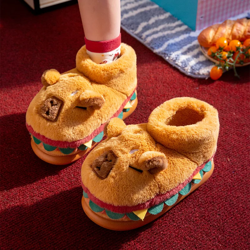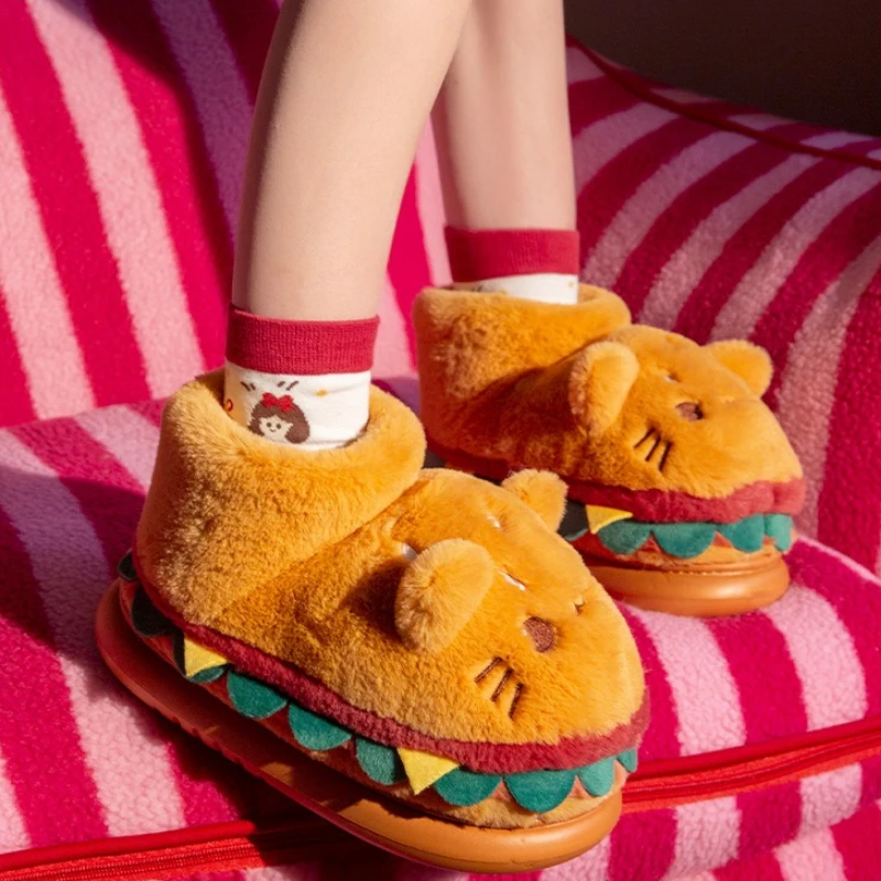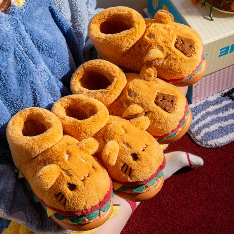 Comprar Lindas zapatillas mullidas de hamburguesa para mujeres y hombres, zapatos cálidos de invierno de alta calidad para casa, botas de nieve de algodón Capibara de gato peludo para parejas