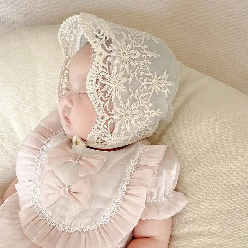 Bonito sombrero de malla para bebé niña, sombrero de encaje con flores para bebé, sombrero de princesa con volantes y flores bordadas, accesorio de fotografía para recién nacido