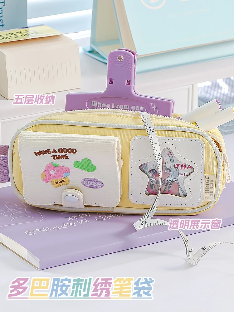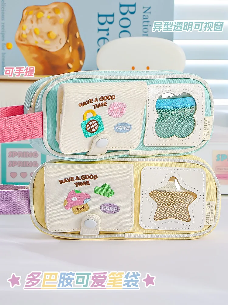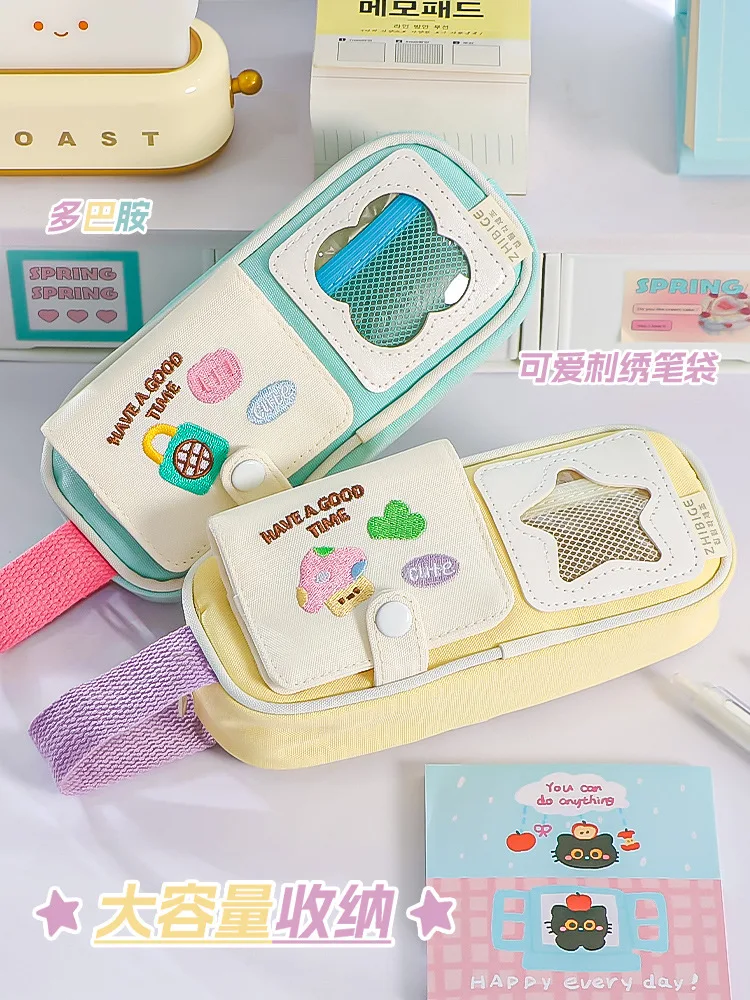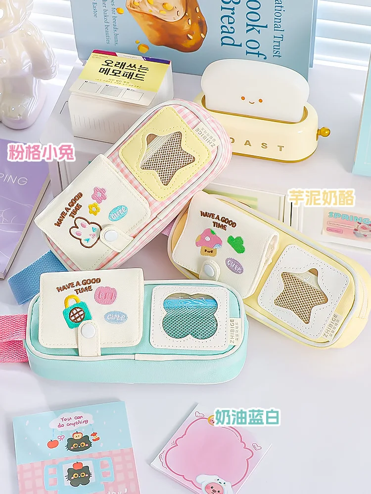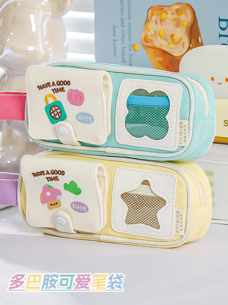 Lindo bolso de tarjeta extraíble, bolsa de lápices, pequeño, fresco, japonés, Ins, papelería de gran capacidad, estuche para lápices, suministros escolares