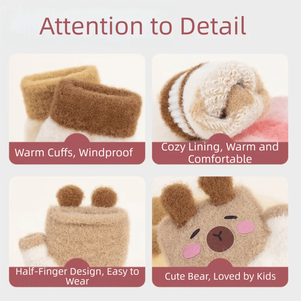 Brand new and high quality. Type: Kids Gloves Material: Knitted Color: Style As Shown Size: (Suitable for children aged 0-3 Years Old) ,about 9.5*7.5cm(3.74*2.95in) Features: Cartoon,Cute,Plus Velvet,Thick Warm,Elastic,Soft. Features: - Unique cartoon design makes baby outstanding in the people. - The gloves are very soft & cozy, and are great to to wear outdoors for walking, or hiking -Keep your baby's busy little hands warm in the cold weather. - A sweet gift to your baby. Package includes: 1 Pair Kids Gloves