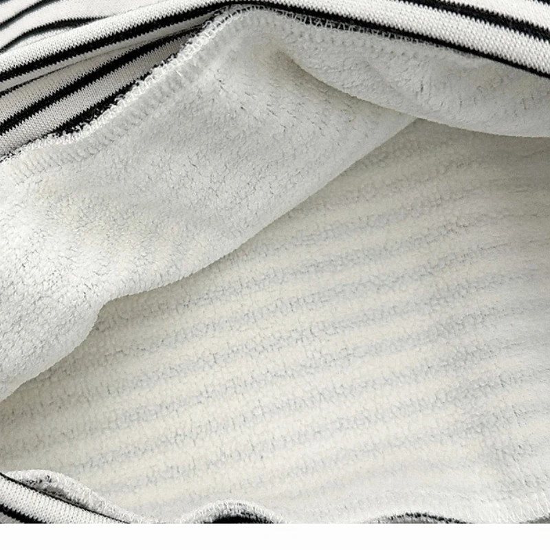 Lindo conjunto de sudadera con capucha de lana con orejas de oso para niños pequeños, pantalón grueso para otoño/invierno, traje cálido a rayas para Navidad