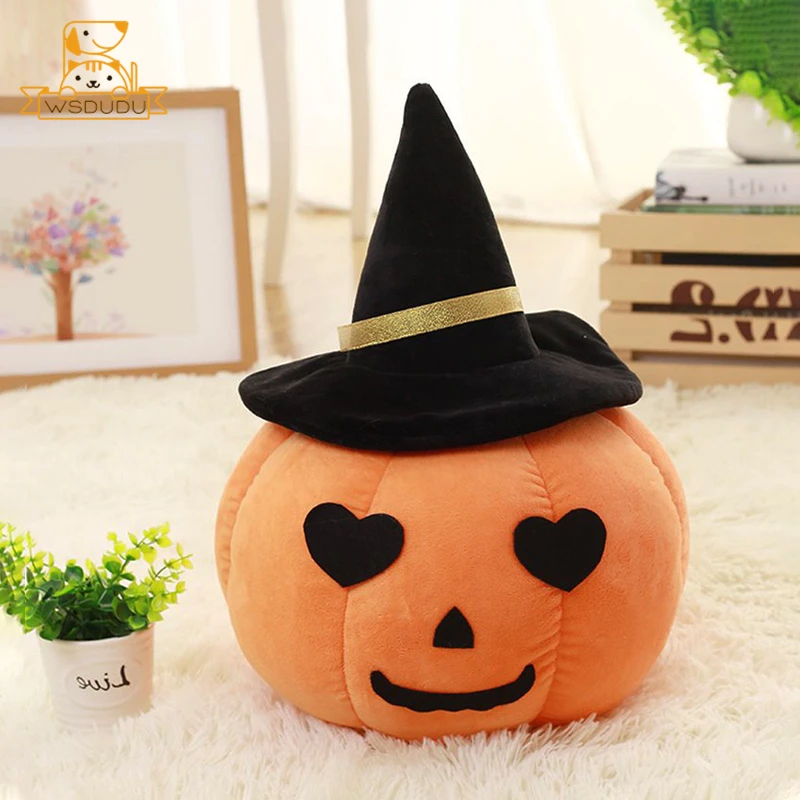 Comprar Lindo juguete de peluche de calabaza con sombrero de bruja, ojos de corazón de Halloween, muñeco de peluche de dibujos animados, almohada suave Kawaii, regalo para niños y adultos, decoración del hogar