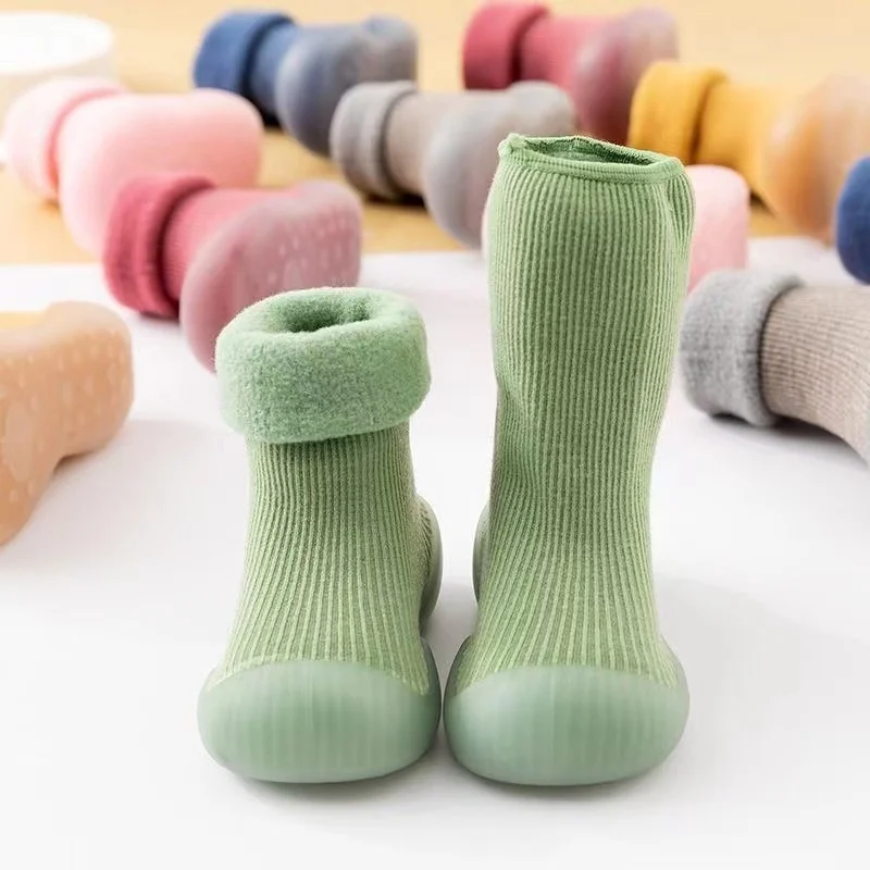 Lindo un par de zapatos versátiles para bebés con suelas blandas, zapatos de interior antideslizantes para niños y calcetines de suelo, gruesos y cálidos