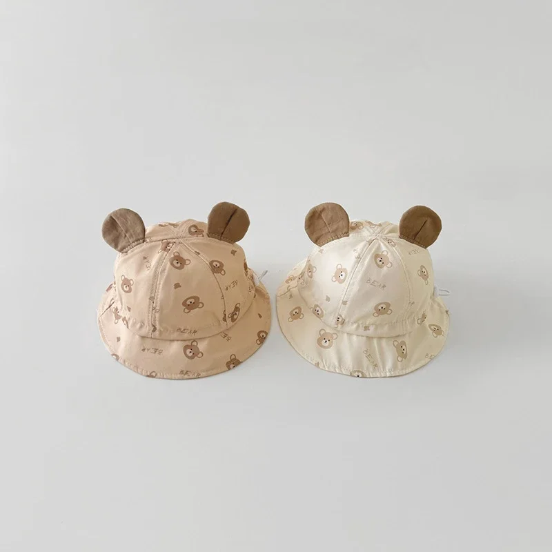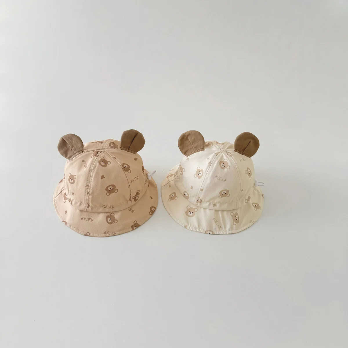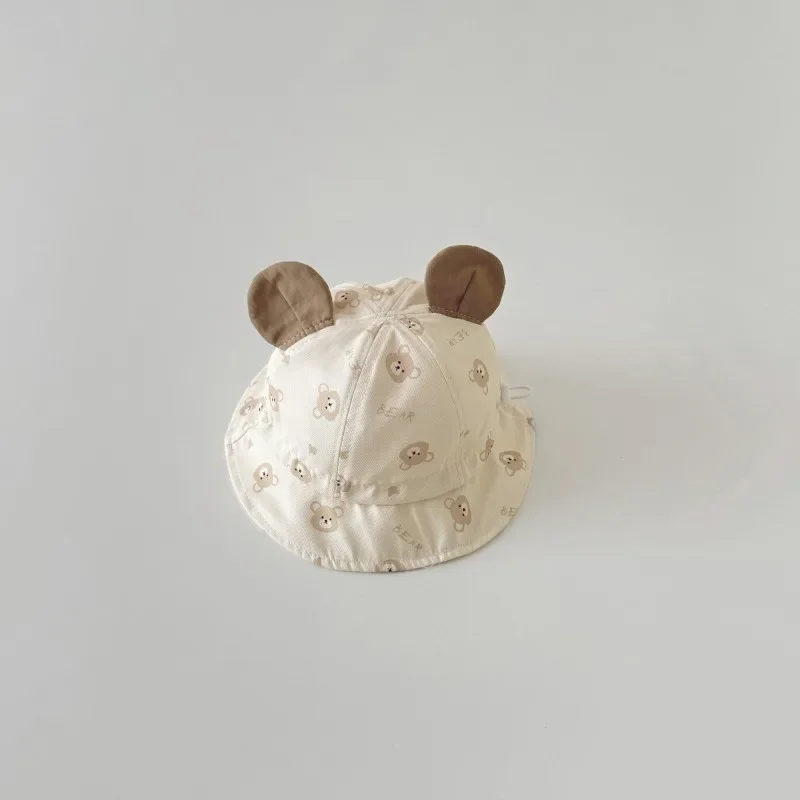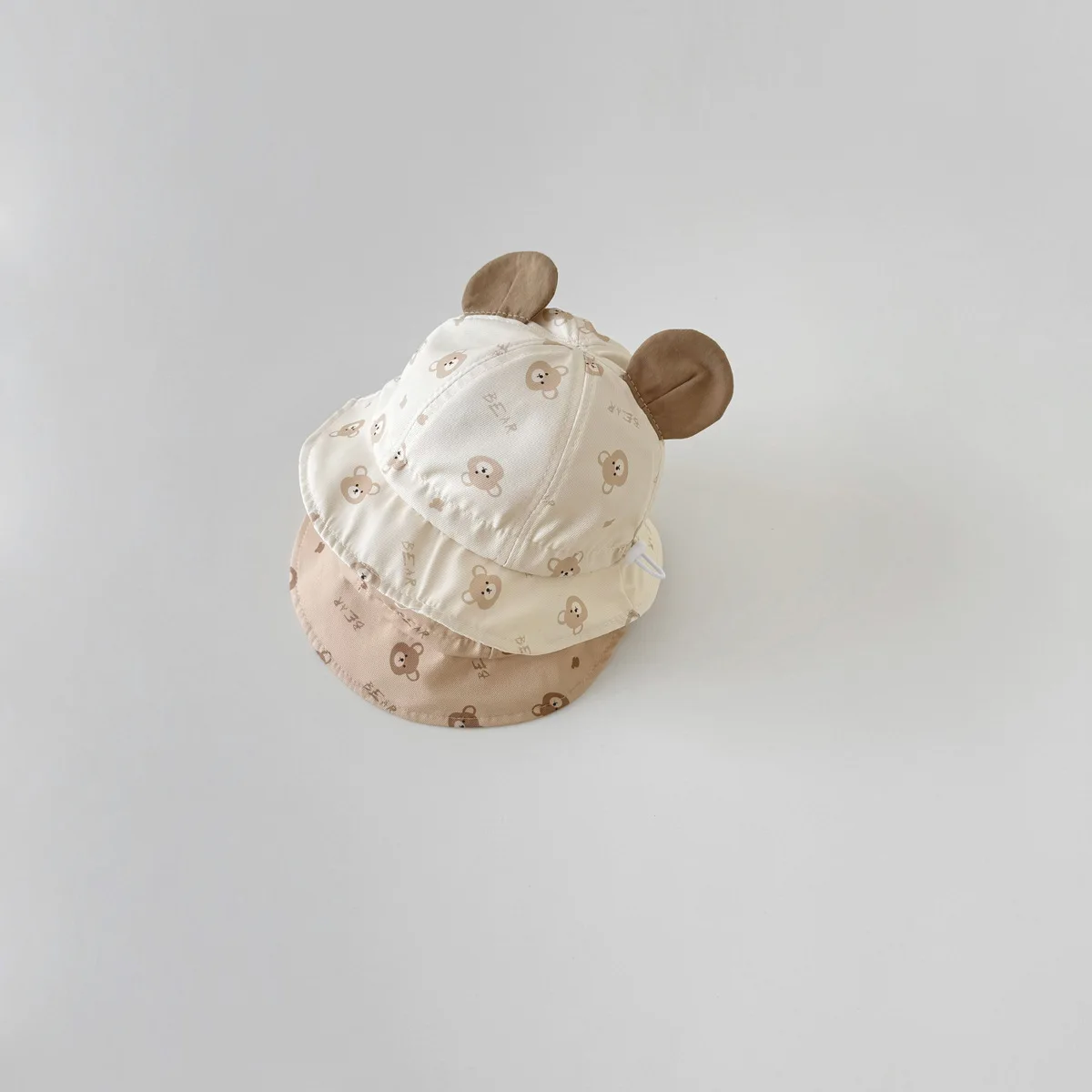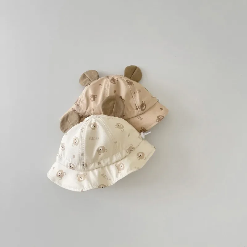 Comprar Lindo sombrero de cubo de oso de dibujos animados para bebé, moda coreana con orejas de oso dulce, sombrero de pescador para niños pequeños, sombrero de sombrilla de viaje para primavera y verano