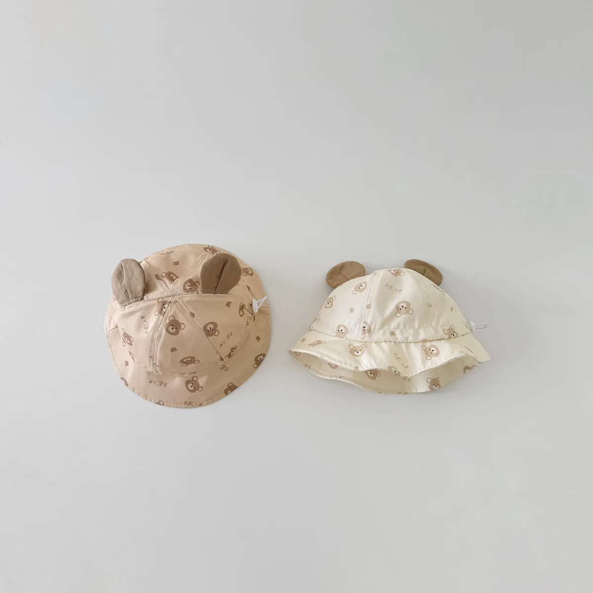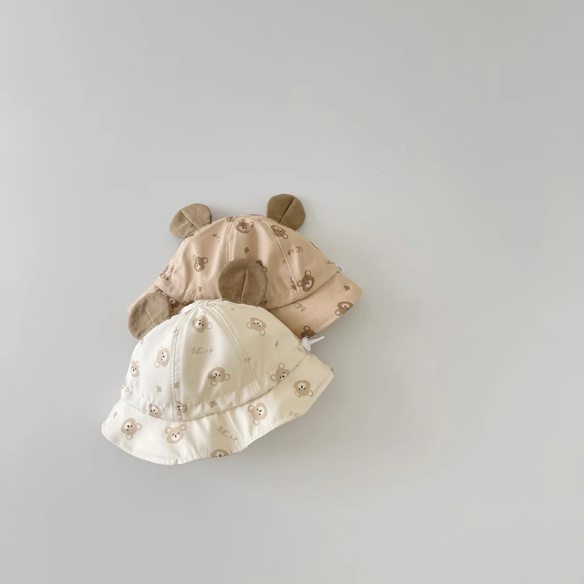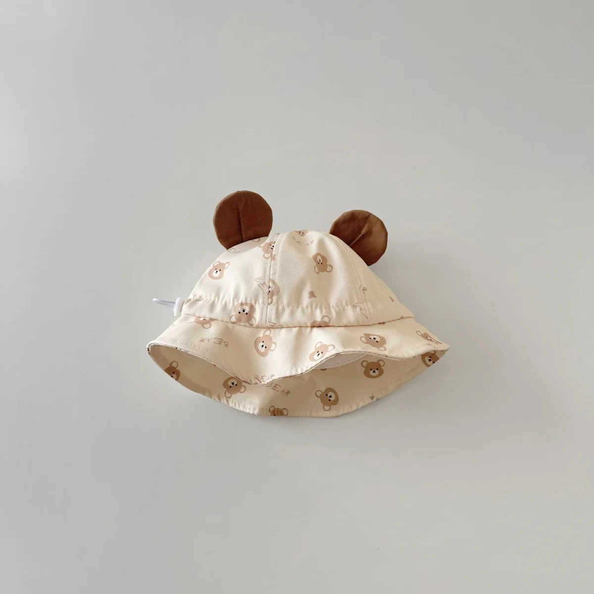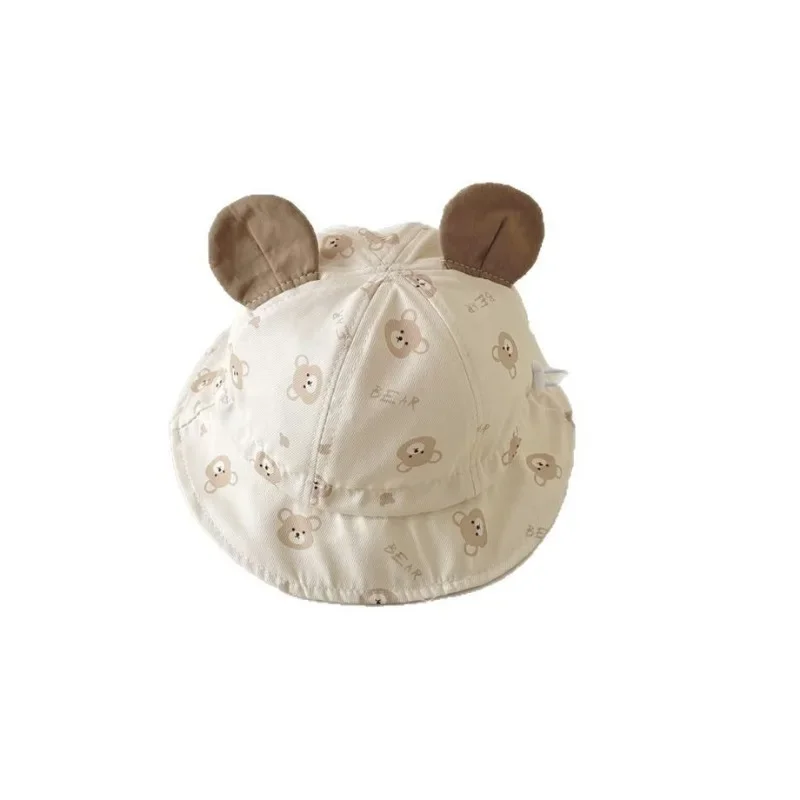 Comprar Lindo sombrero de cubo de oso de dibujos animados para bebé, moda coreana con orejas de oso dulce, sombrero de pescador para niños pequeños, sombrero de sombrilla de viaje para primavera y verano
