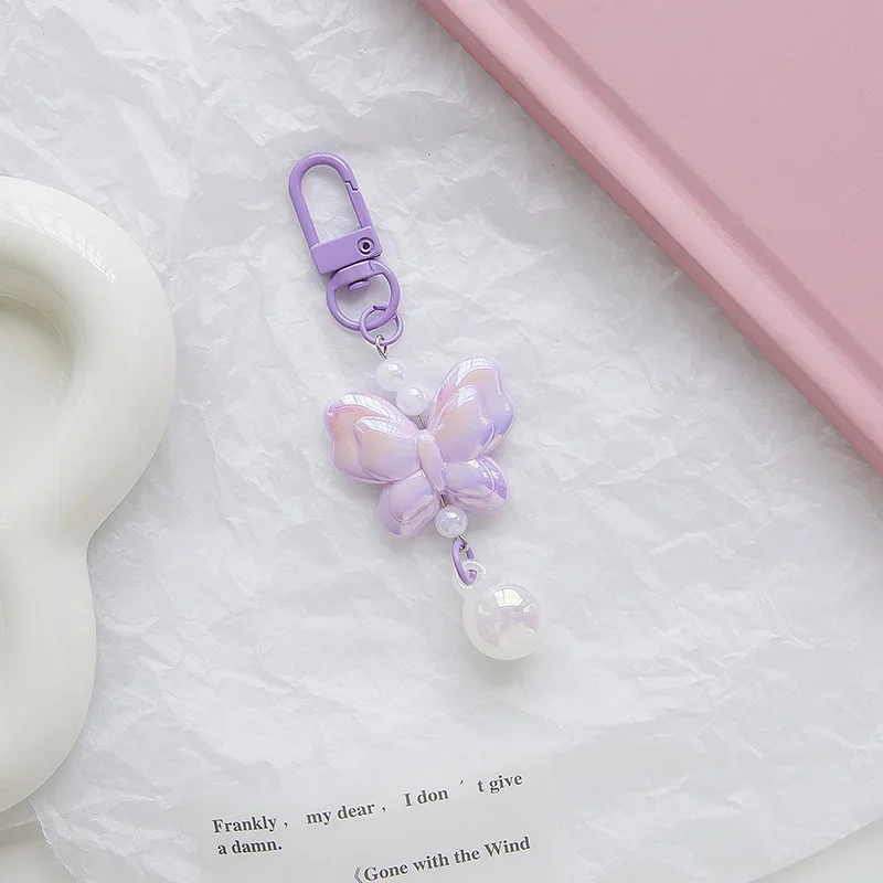 LLavero con colgante de perlas y lazo a la moda, encantador llavero para estudiantes y niñas, bolso para mujer, mochila, bolso colgante, funda para auriculares, joyería