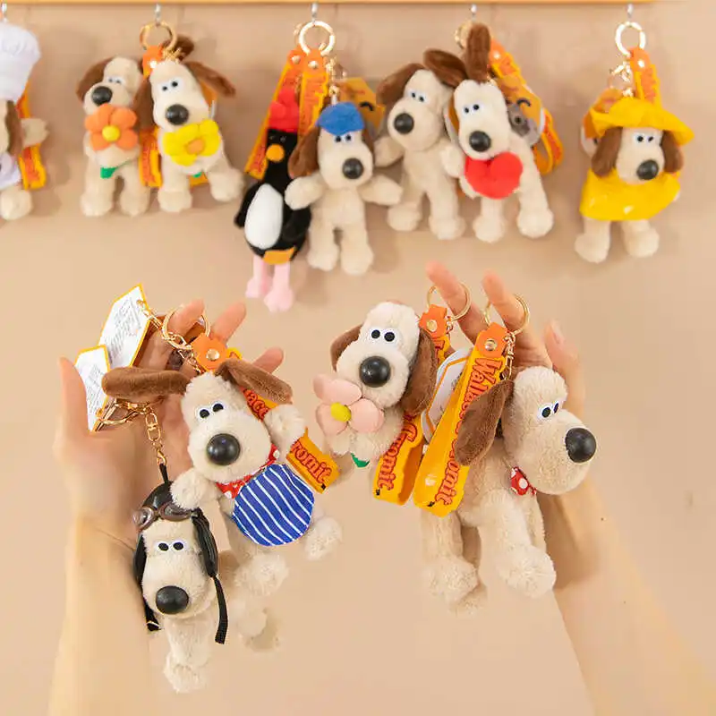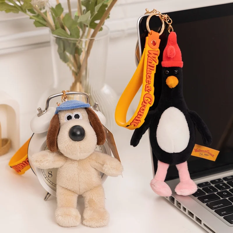 Comprar LLavero Original con etiqueta Wallace Gromit, bolso de peluche Gromit, colgante, llavero Kawaii, bonito llavero, decoración de llaves de coche, regalo de Navidad