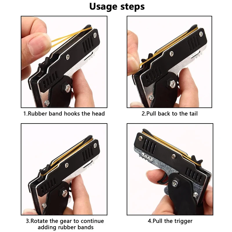 【Material de alta calidad】El juguete de expulsión de banda de goma es diferente de otros juguetes de expulsión de banda de goma de madera, nuestro juguete de expulsión de banda de goma tiene una estructura de metal ABS, es plegable y portátil.No daña el cuerpo humano después de disparar, la madre puede estar segura de dejar que juegue el bebé.