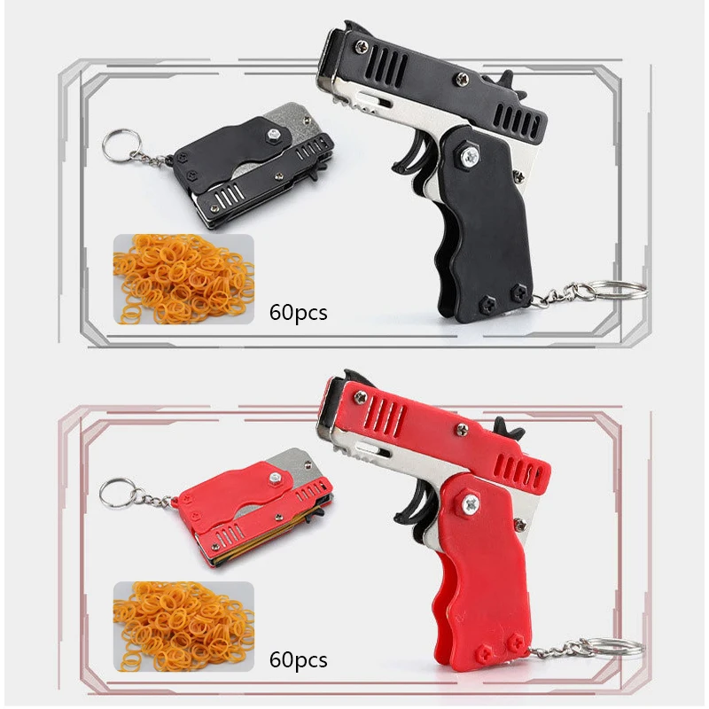 Llavero de pistola con banda elásticaJuguete plegable para niños y adultos, idea de regalo creativa con 60 bandas para divertirse en familiaMini tirador plegable