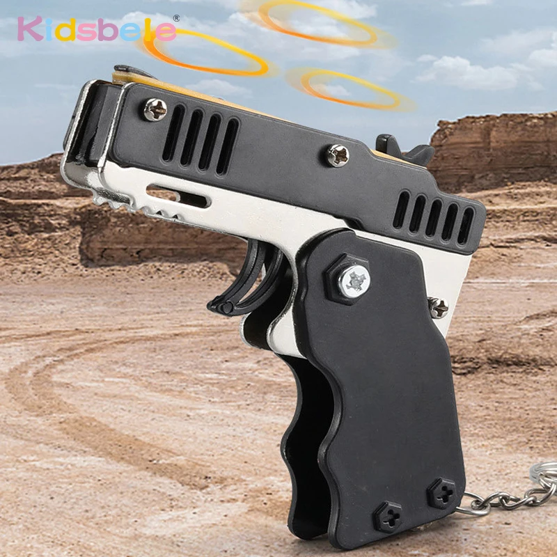 【Bonito regalo】Este llavero plegable con pistola de metal es un regalo creativo de Navidad, Año Nuevo, cumpleaños, Día de San Valentín para padre, abuelo, estudiante, compañero de clase, familia, amigo, les permite jugar juegos de tiro con banda elástica con la familia.