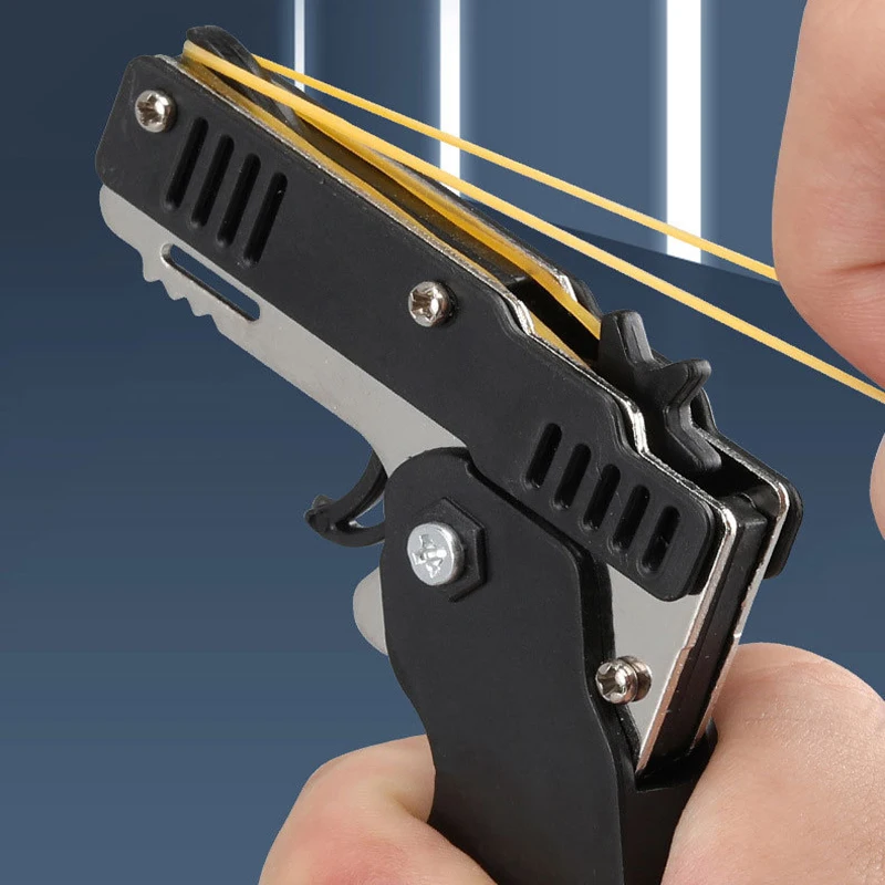 【Plegable y portátil】Después de plegarlo, el tamaño de la pistola con banda elástica metálica es de aproximadamente 7 cm de largo y 4 cm de ancho.Es fácil de llevar a actividades al aire libre, también plegable para caber en sus bolsillos o sujetar el llavero a sus cinturones o mochilas.