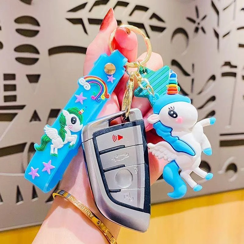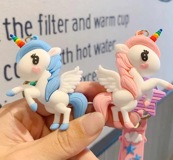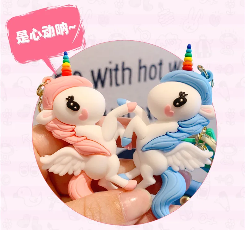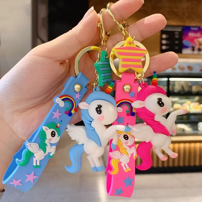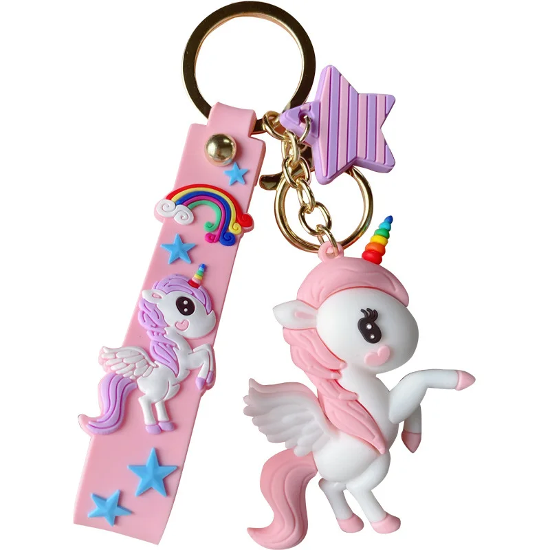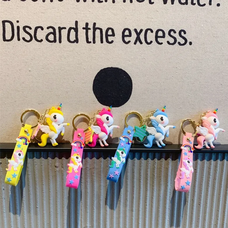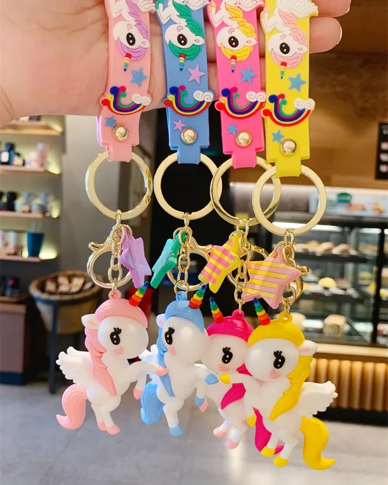 LLavero de caballo de arcoíris de dibujos animados, llavero de coche de unicornio bonito, colgante de bolso creativo, llavero pequeño de regalo al por mayor