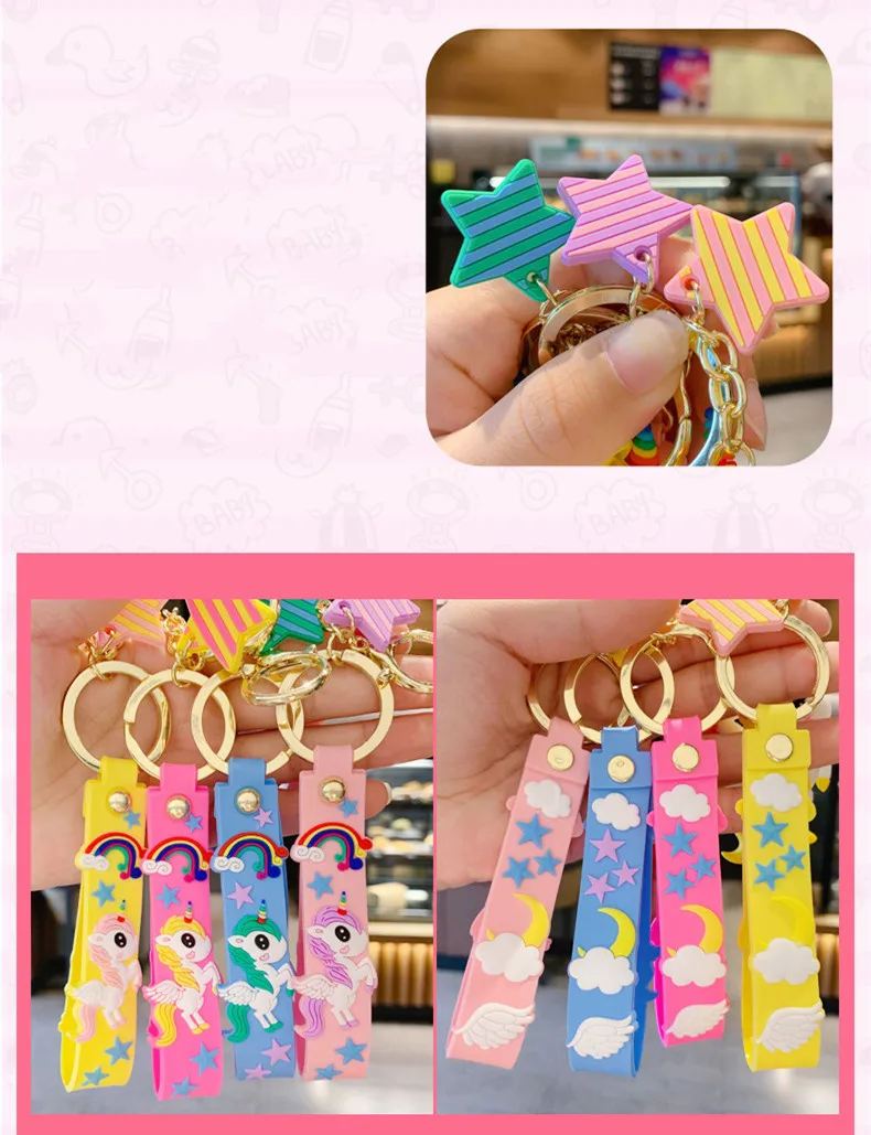 Comprar LLavero de unicornio arcoíris de dibujos animados, llavero creativo para coche, colgante de bolso, pequeño regalo, accesorio Interior de coche, 1 ud.