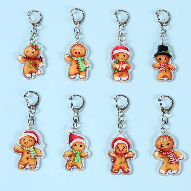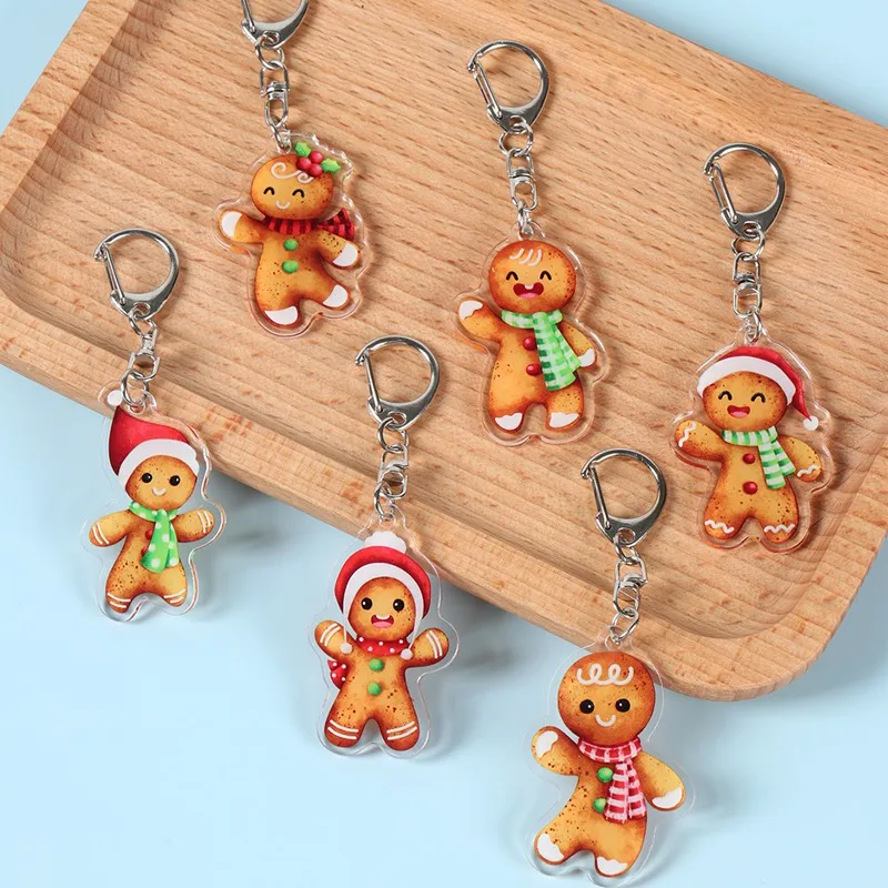 Llaveros acrílicos bonitos de Navidad de hombre de jengibre, llavero de moda, colgantes para bolso, anillo, joyería para mujeres, dijes para adolescentes, regalos
