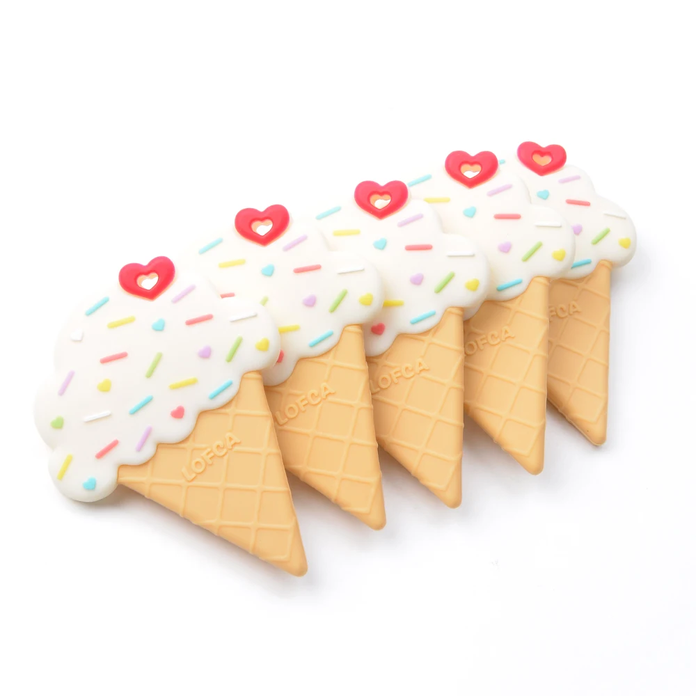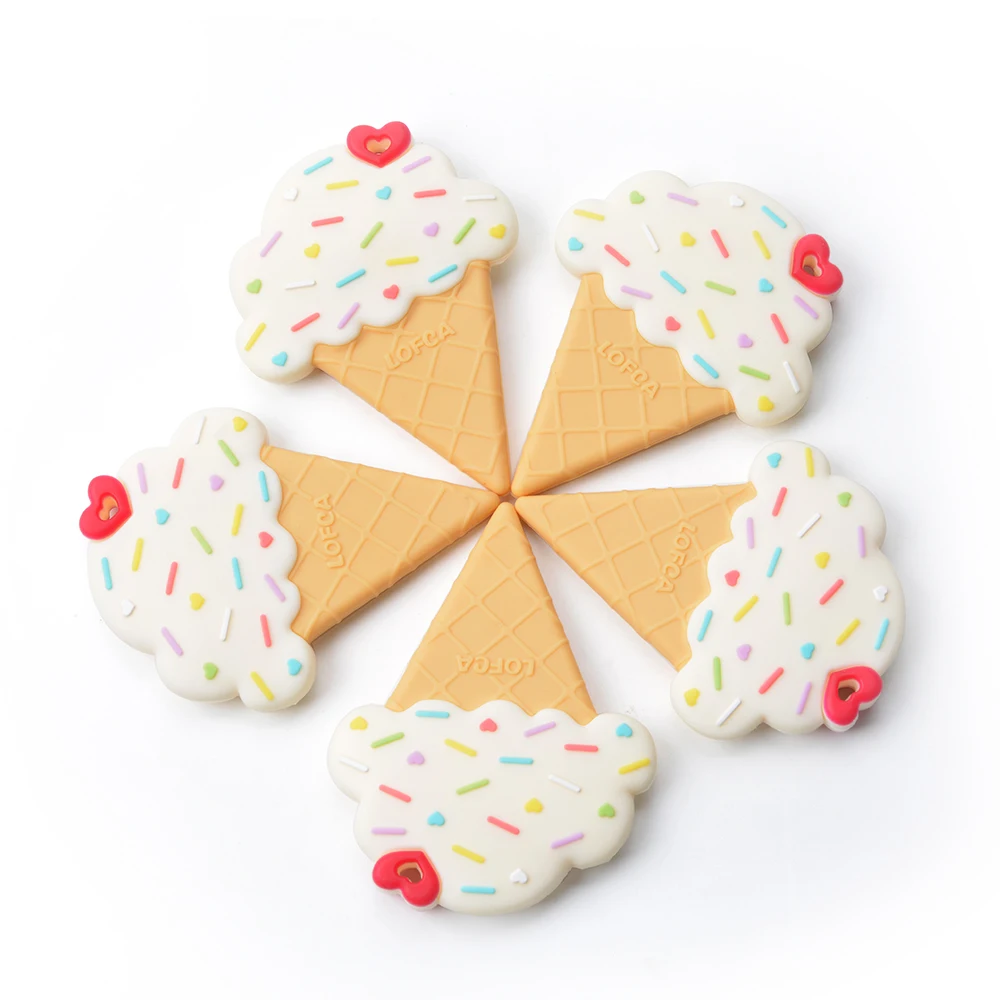 LOFCA 1 Uds. Collar de dentición de lactancia de helado, venta al por mayor, juguetes coloridos para masticar para bebés, cuentas de silicona de calidad alimentaria para bebés