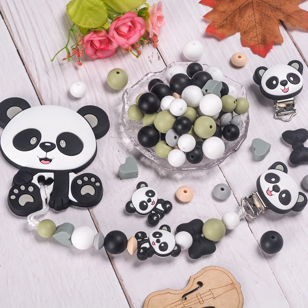 LOFCA 45/46 Uds. De cuentas de dentición Focal de Panda de silicona, mordedor para dentición de bebé, pulsera DIY, collar, accesorios de artesanía de joyería