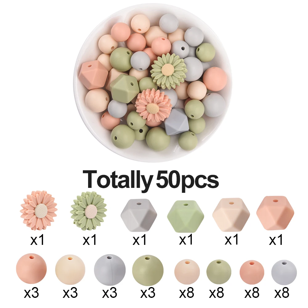 Comprar LOFCA 50 Uds cuentas de girasol de silicona mordedor de calidad alimentaria utilizado para hacer collar de chupete cadena de chupete accesorios de joyería