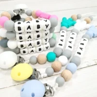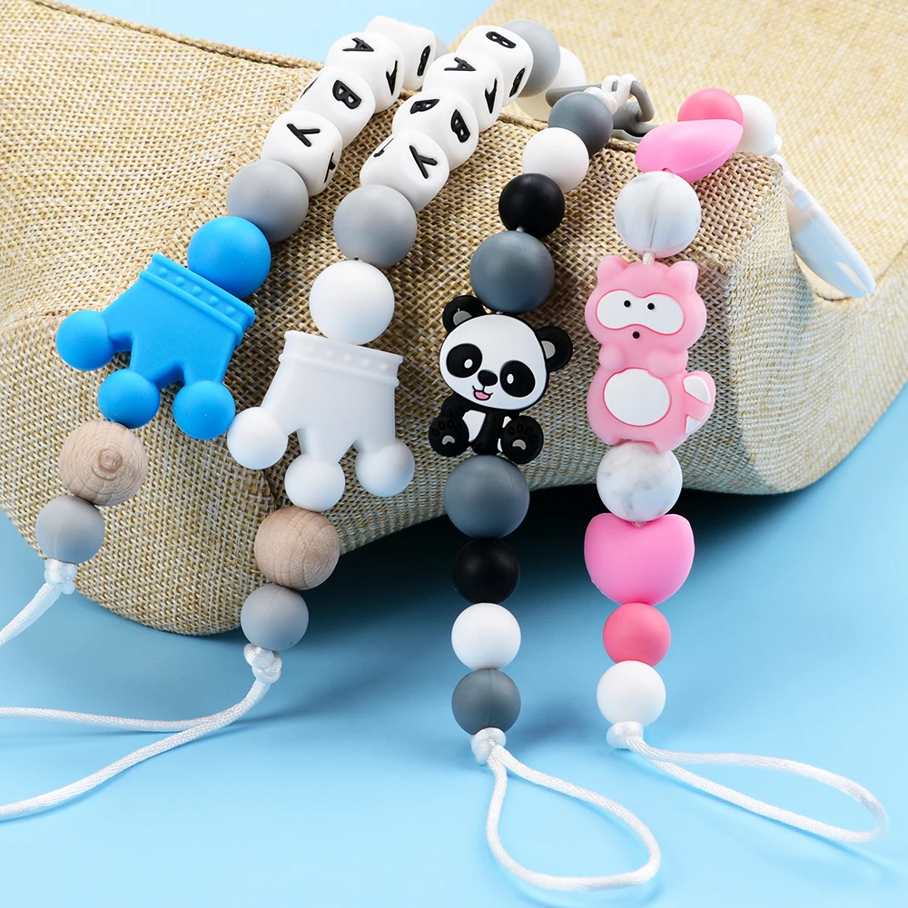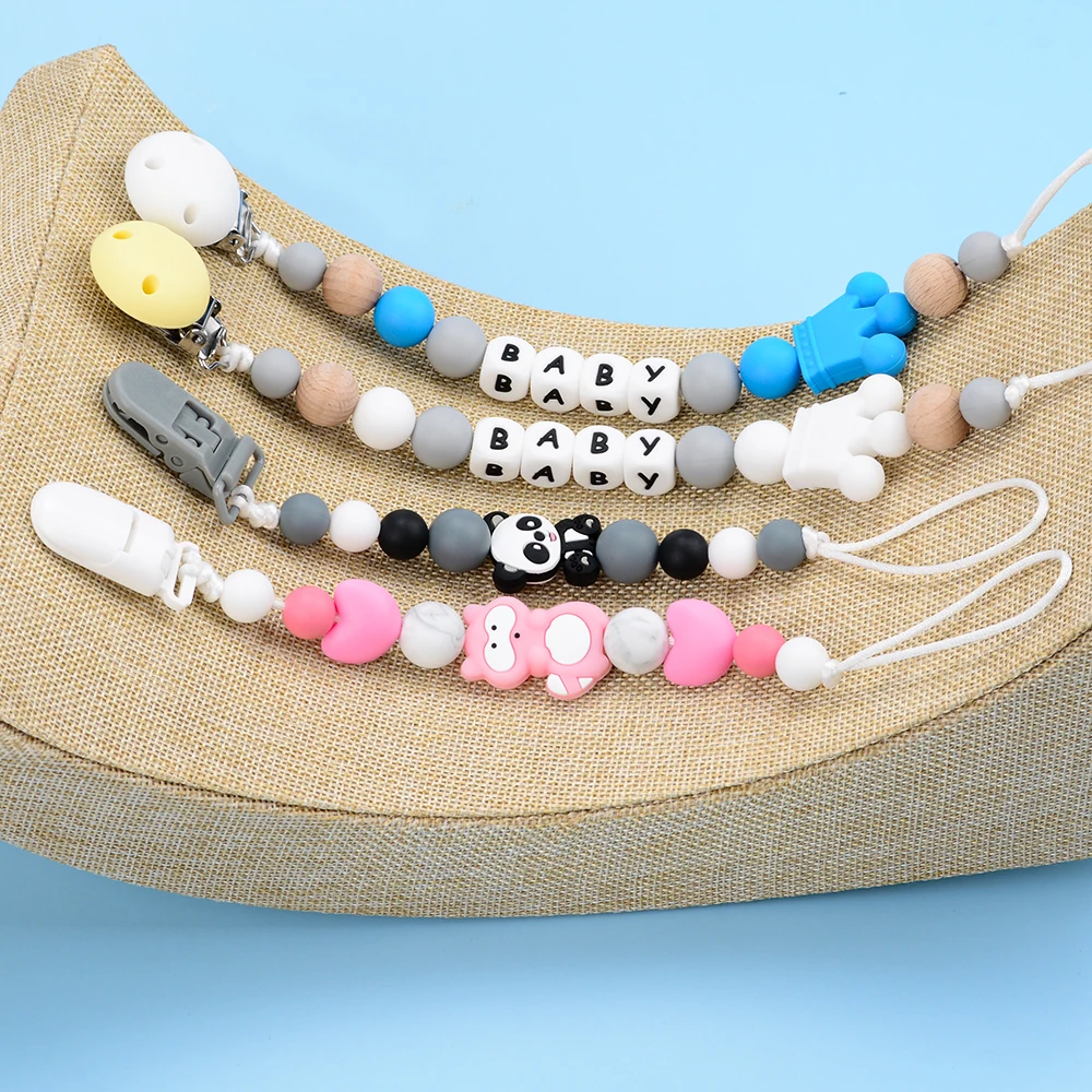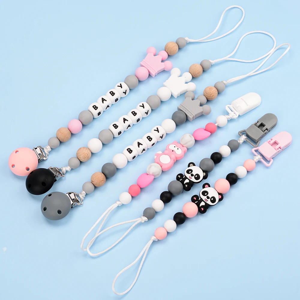 Comprar Lofca-Clip de silicona con nombre personalizado, cadena hecha a mano, juguete para la dentición, regalo artesanal, soporte de corona de silicona, chupete para bebé