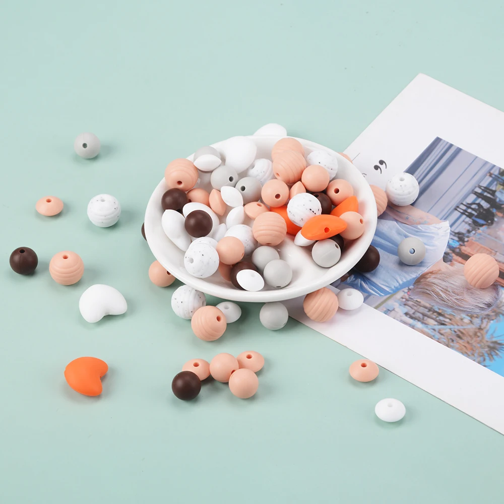 Comprar LOFCA-collar de silicona con forma de corazón a rayas, cuentas redondas sueltas, collar de dentición, sin BPA