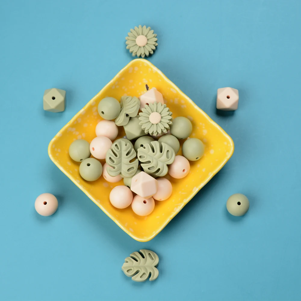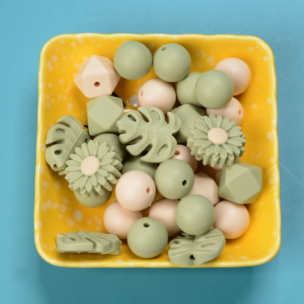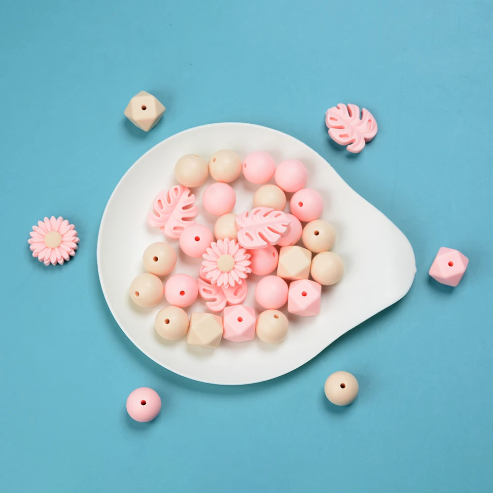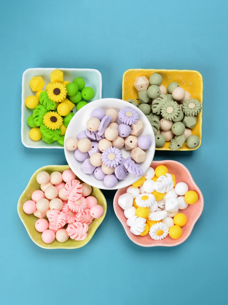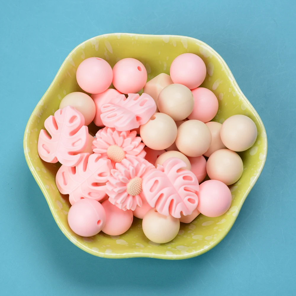 LOFCA-Cuentas de silicona para dentición de bebé, collar de flores y hojas, cadena de chupete, mordedor Circular de grado alimenticio